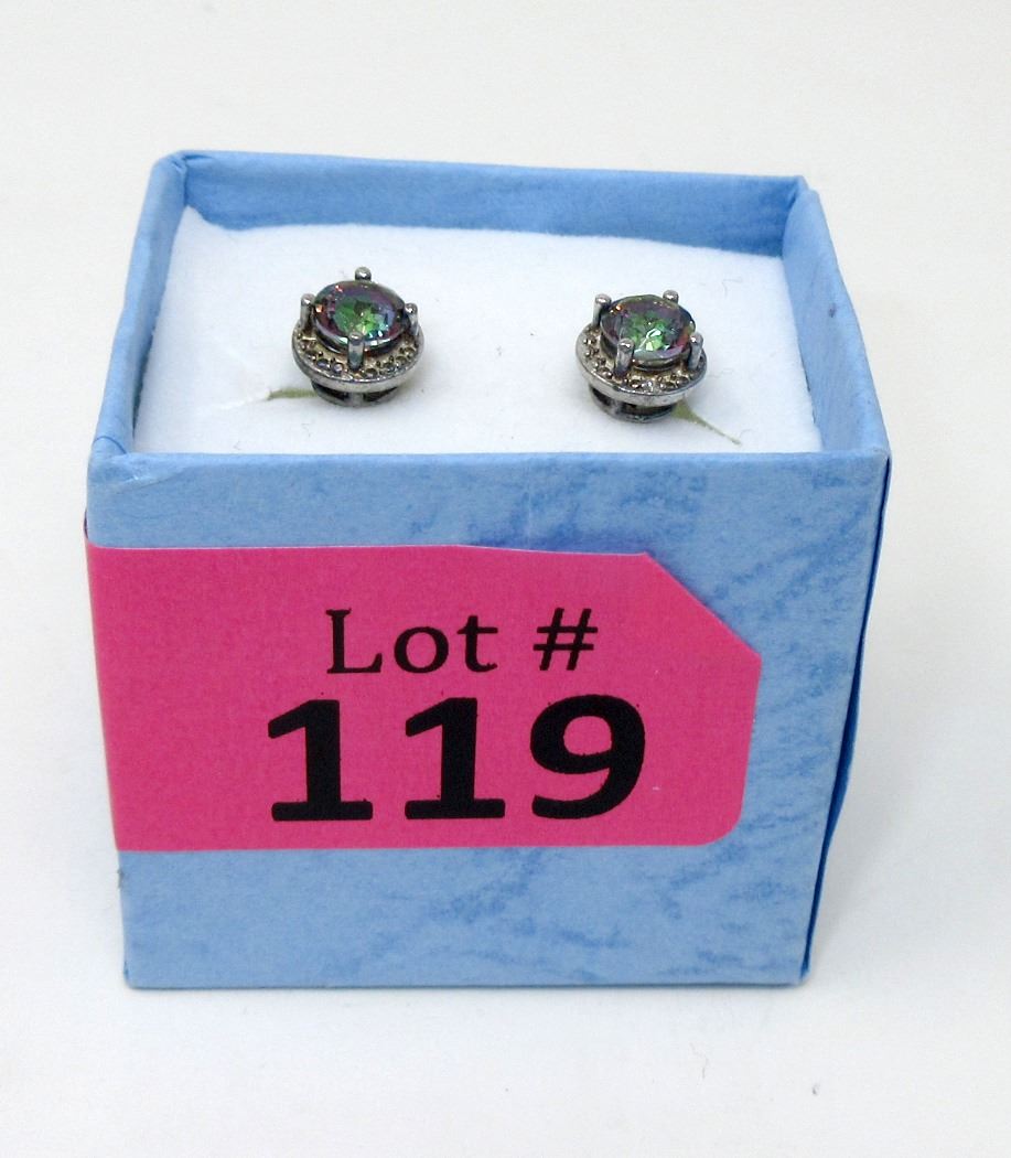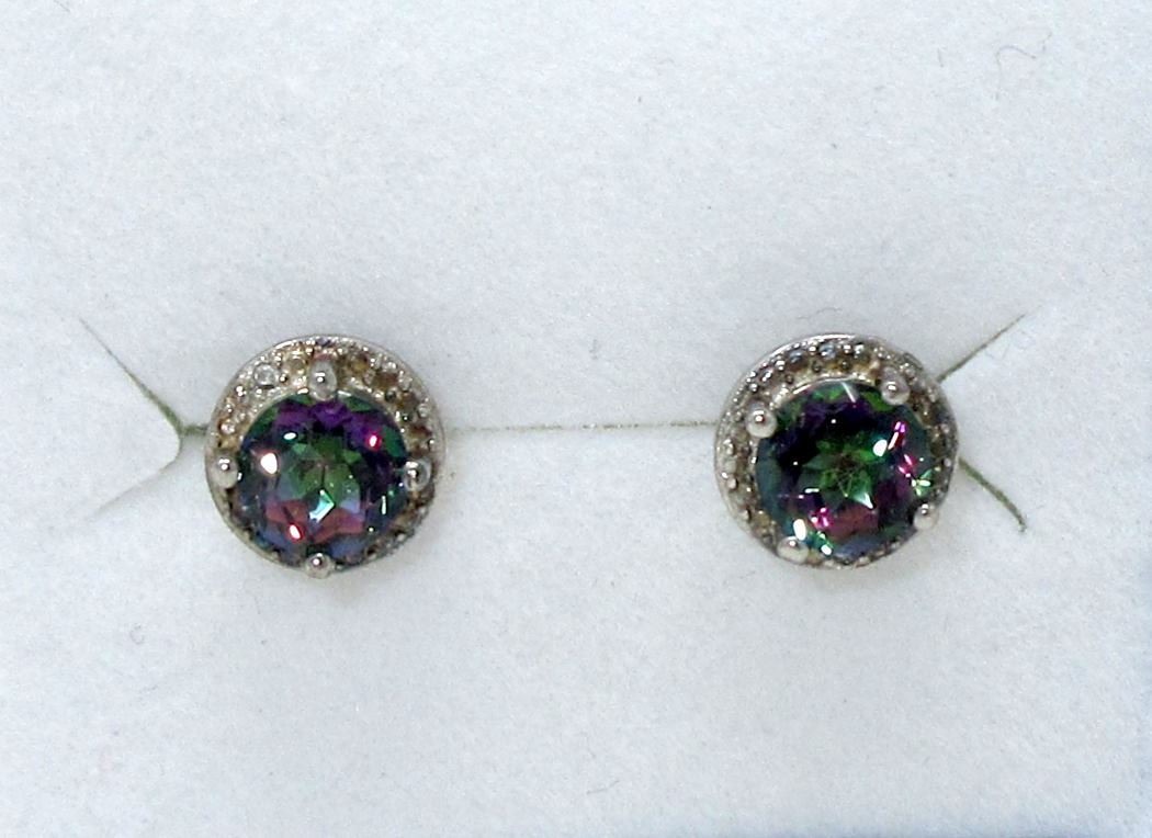 Sterling silver. Round cut. Rainbow flash. Post & butterfly backs. Retail value $200.