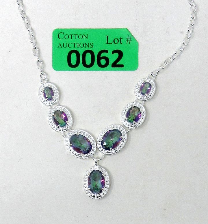 7 Graduated gemstones with the center stone measuring 10 mm x 14 mm.