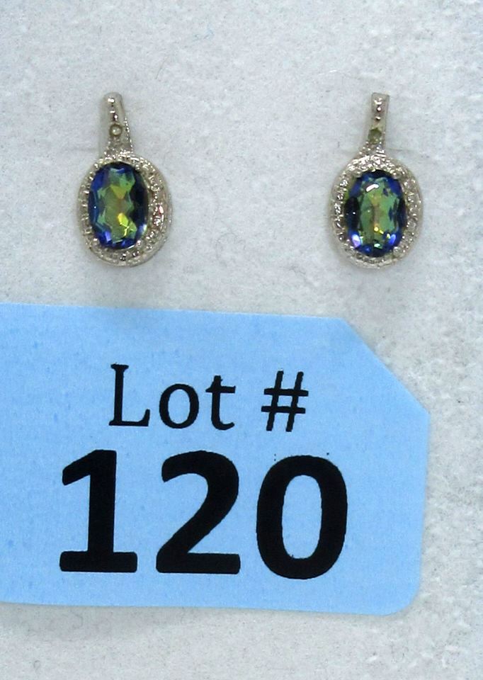 Sterling silver. Oval cut. Rich, deep blue/green topaz. Post & butterfly backs. Retail value $250.