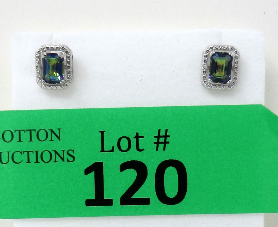 Sterling silver. Emerald cut. Post & butterfly backs. Retail value $250.