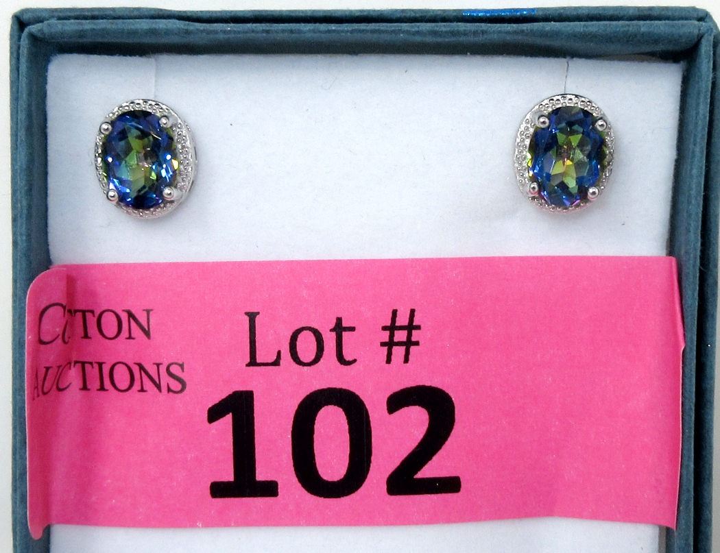 Sterling silver. 5 CT Oval cut topaz. Post & butterfly backs. Includes $300 certificate.