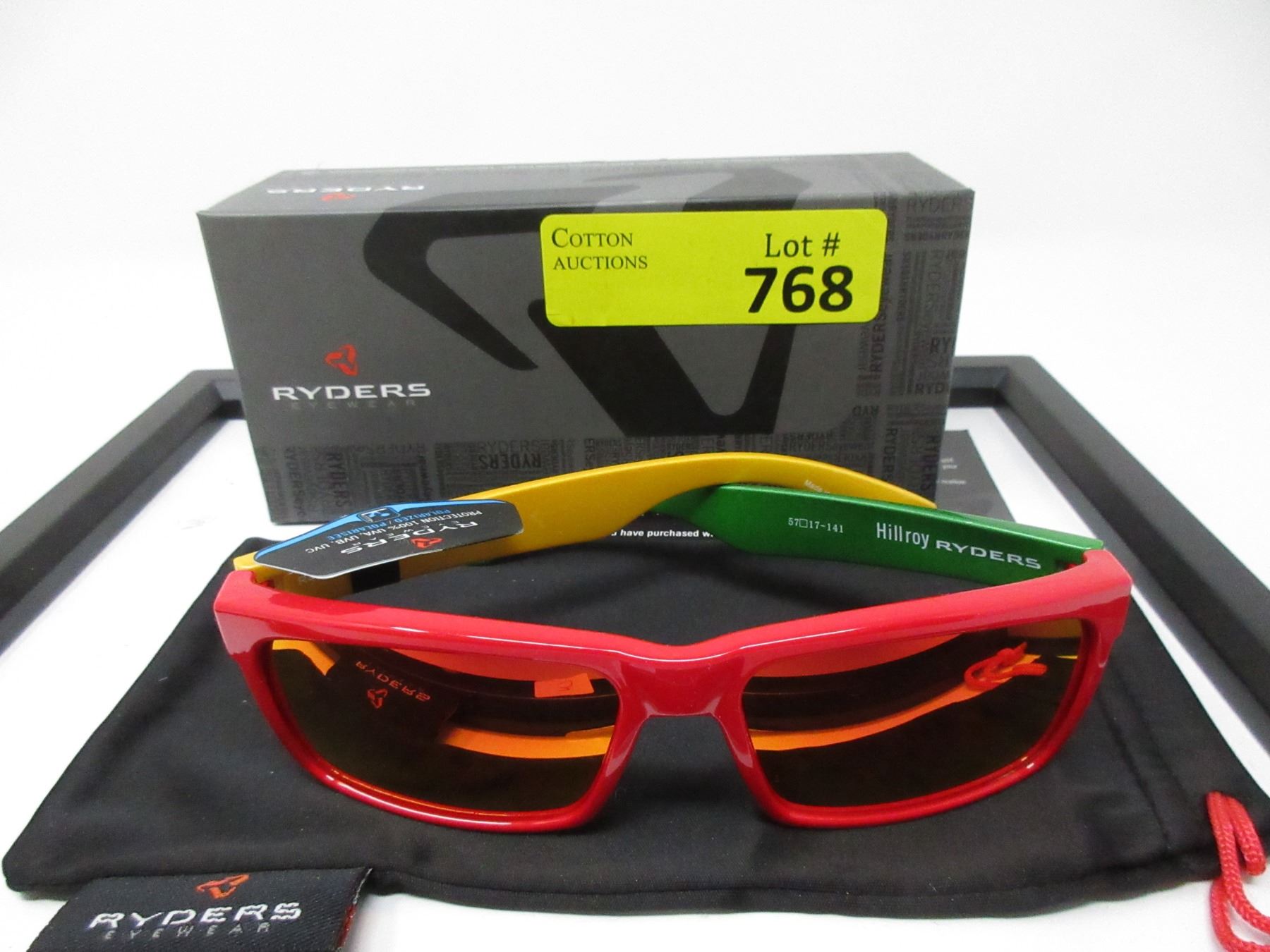Red, Green, Yellow frame with brown polarized lenses. Retail: $69.99.