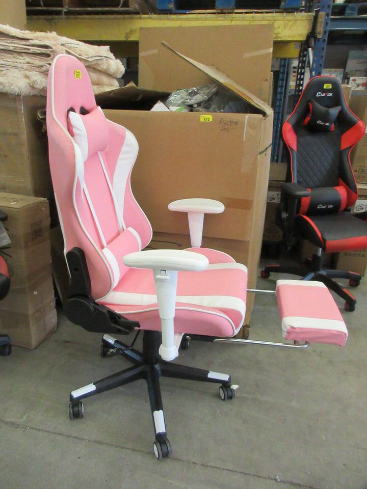 Removable headrest & lumbar cushion. Pull out foot rest. PU Leather. Model: TGBU5 - 406174. Unassembled in box.