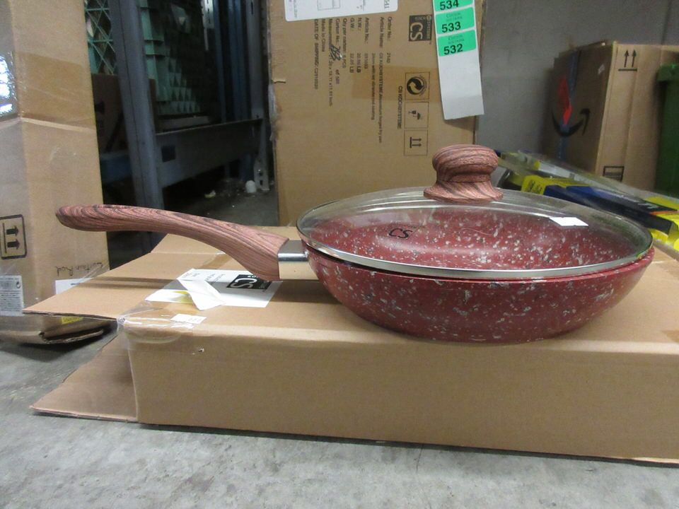 New Red Non-Stick Aluminum Fry Pan w/Lid - 24 cm