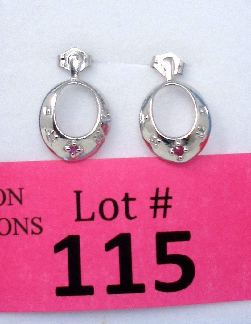 2 Round rubies & 4 diamonds. Post & butterfly backs.