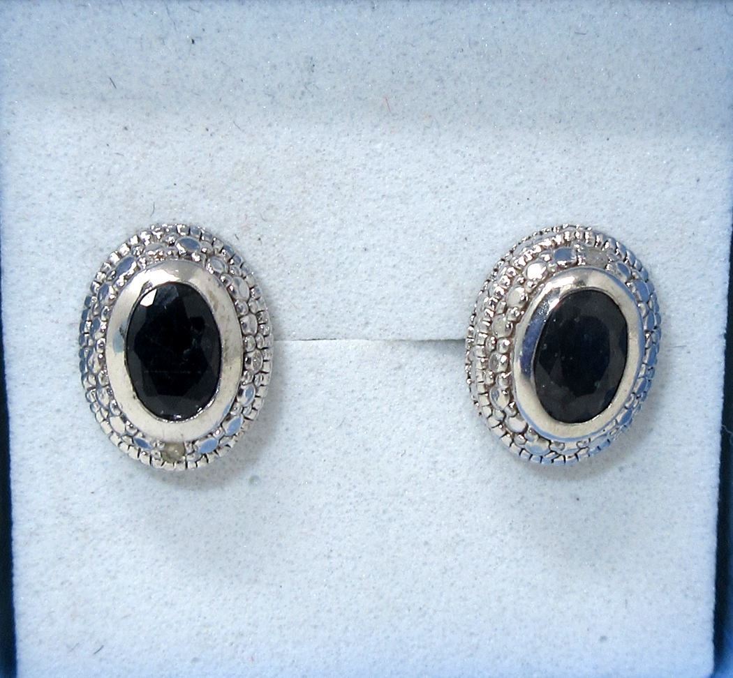 Oval cut sapphires. Bezel set. Post & butterfly backs. Includes $300 certificate.