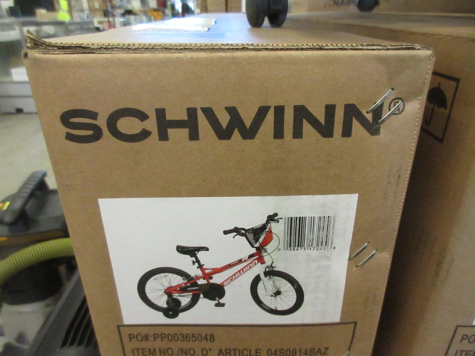 18" Wheels. Includes: training wheels, saddle handle, kickstand, chainguard, and number plate. UPC 038675172456.
