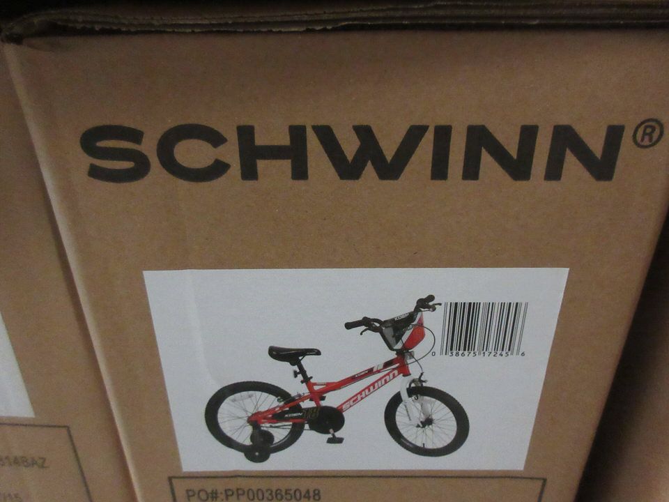 Includes: training wheels, saddle handle, kickstand, chainguard, and number plate. UPC 038675172456.
