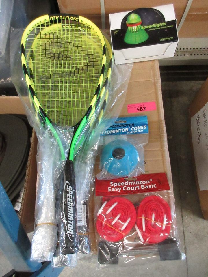 4 Rackets, easy court basic package of cones and box of Speedlights (lights for the birdies - glow for approximately 3 hours)