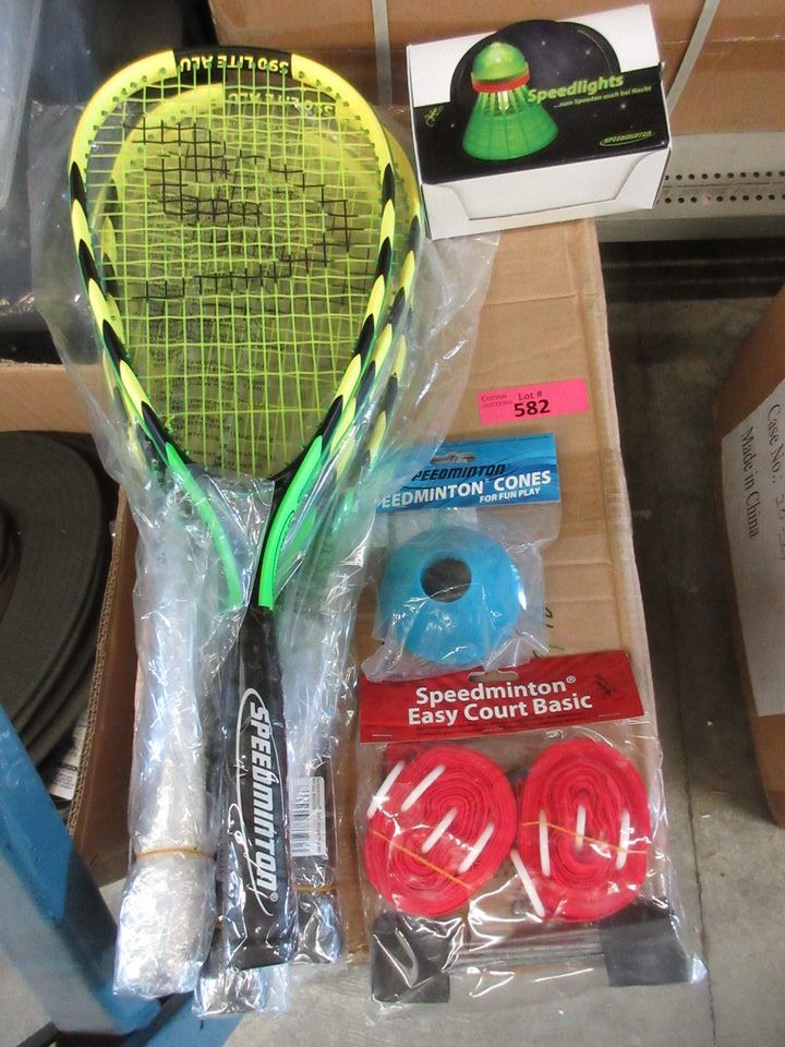 4 Rackets, easy court basic package of cones and box of Speedlights (lights for the birdies - glow for approximately 3 hours)