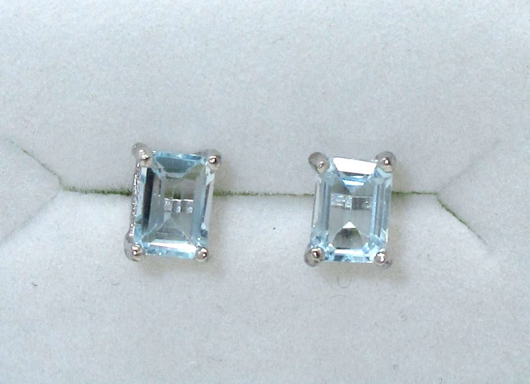 Emerald cut topaz. Post & butterfly backs. Includes $220 certificate.