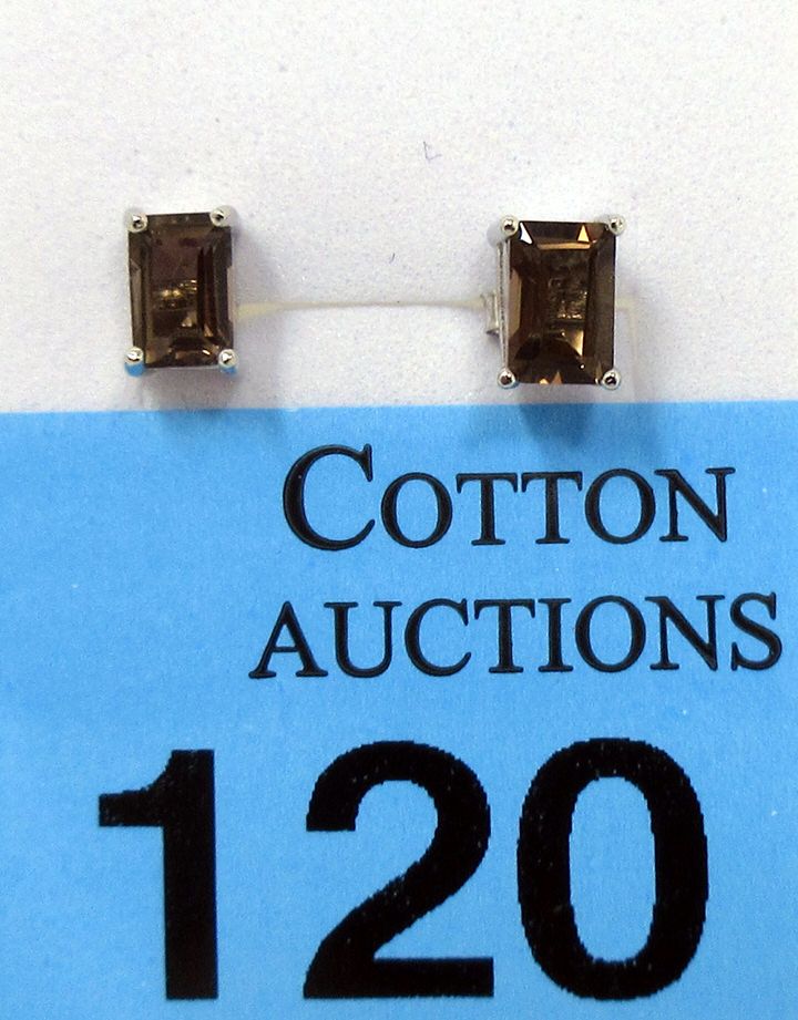 Emerald-cut smokey topaz. Post & butterfly backs.
