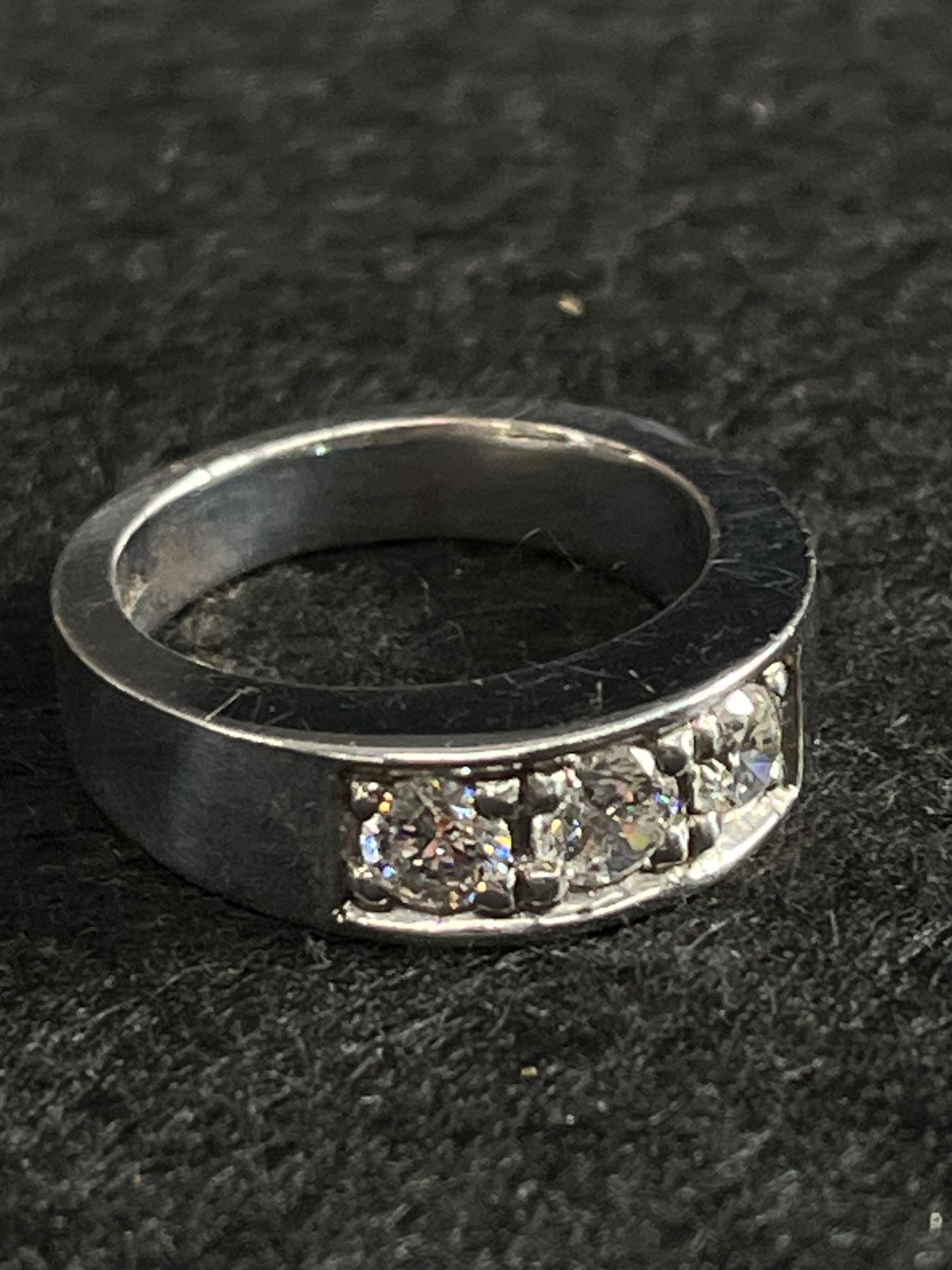 New Sterling Silver with 3 Cubic Zirconia Stones Ring Marked SS Geogems Size 6.5