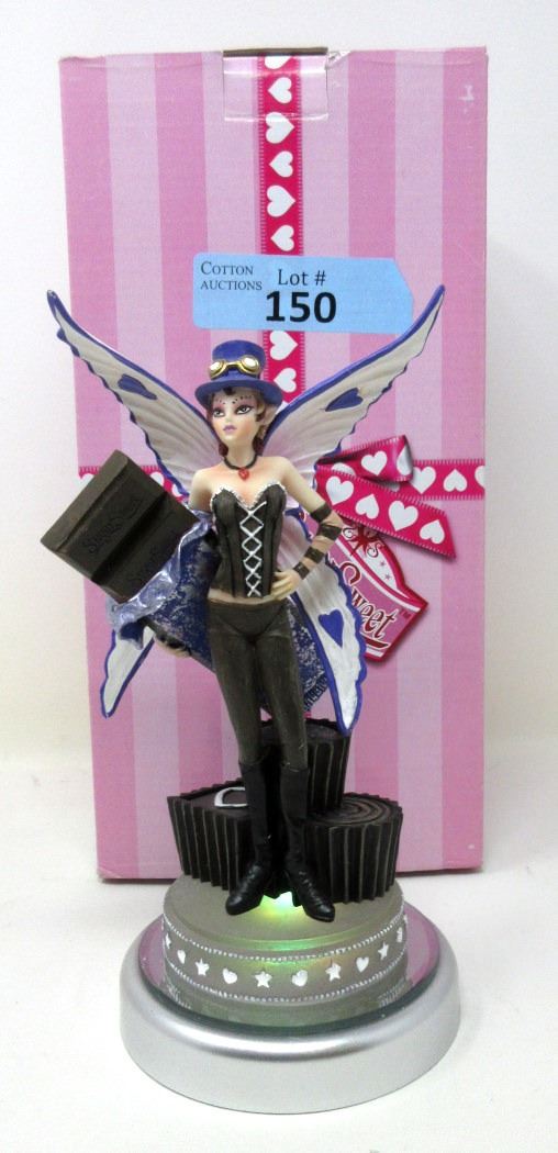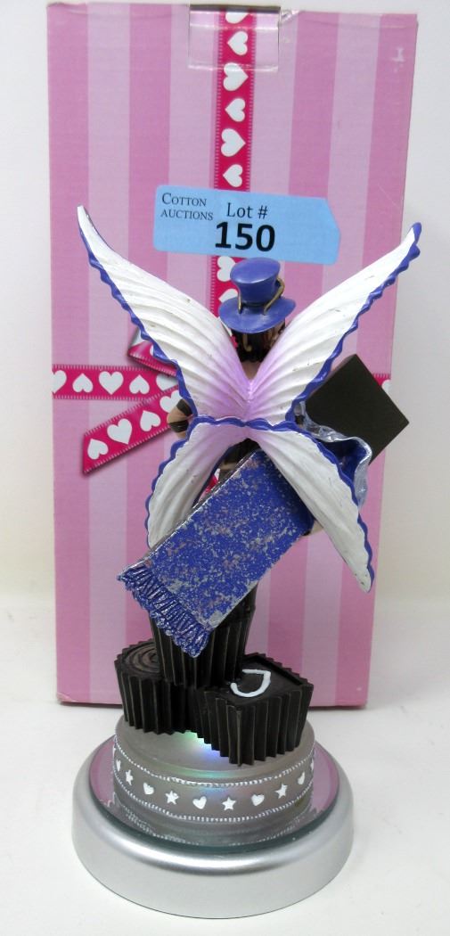 On LED colour changing base. Includes box. 8" tall on a 4" diameter base.