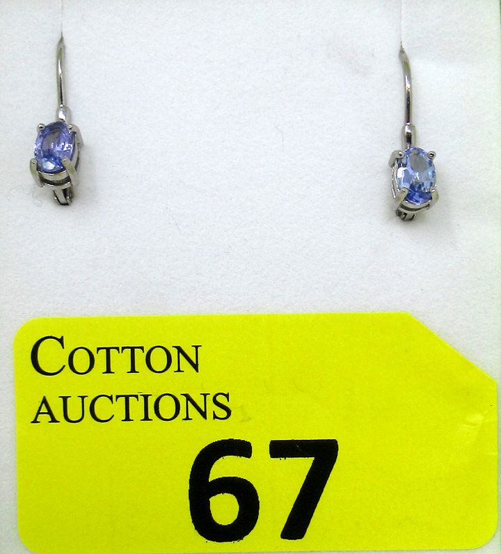 Oval cut. Lively purple/blue colour. Lever style backs. Retail value $400.