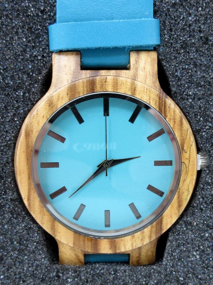 Dedication to My Wife on reverse. Blue Cowhide Leather Strap. 45mm face.