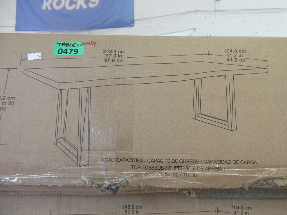 Alderwood with walnut veneer. Table top measures 97.9" x 41.2" / 248.9 cm x 104.8 cm. Unassembled in box. No chairs