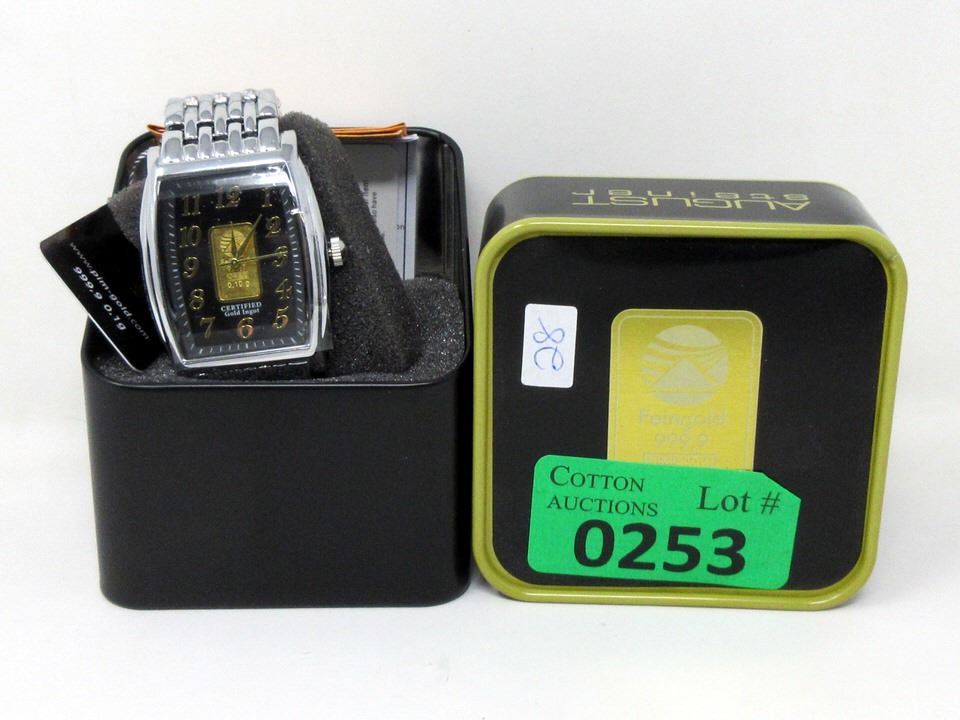 Set with 0.10 Gram .9999 Gold Bar. With Assay card, Warranty Card & Tags. With US $495 Tag.