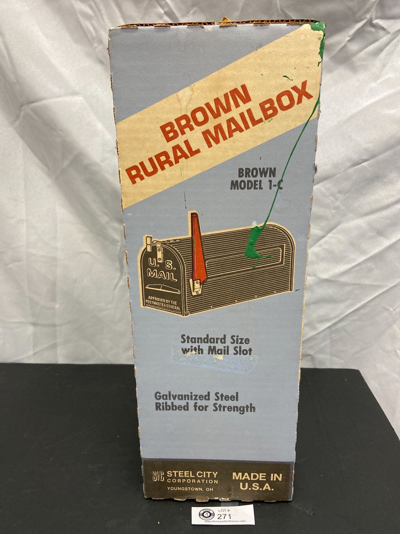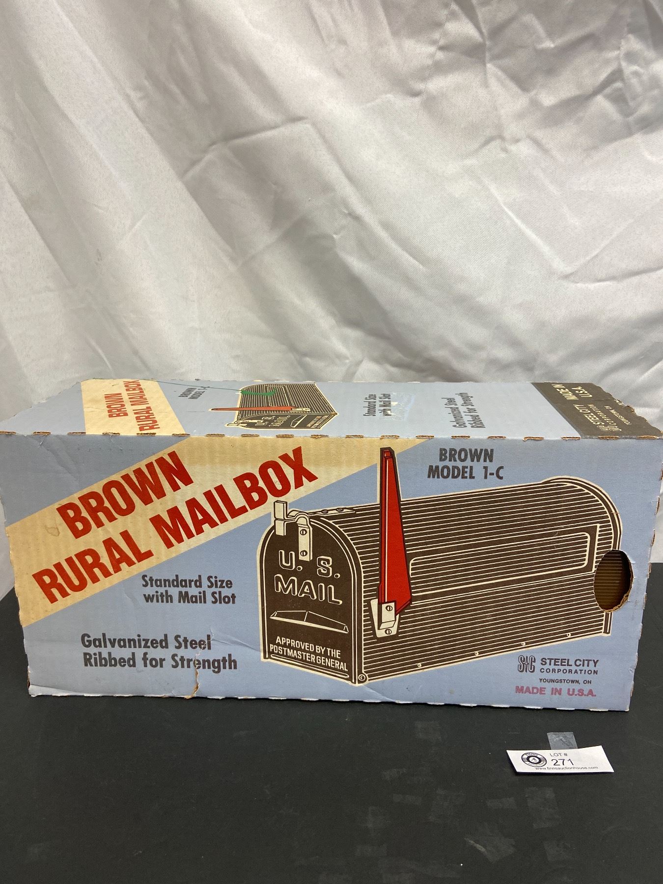 New old Stock in Box. Brown Rural Mailbox Standard Size with Mail Slot. Galvanized Steel Ribble. Brown Model 1-C