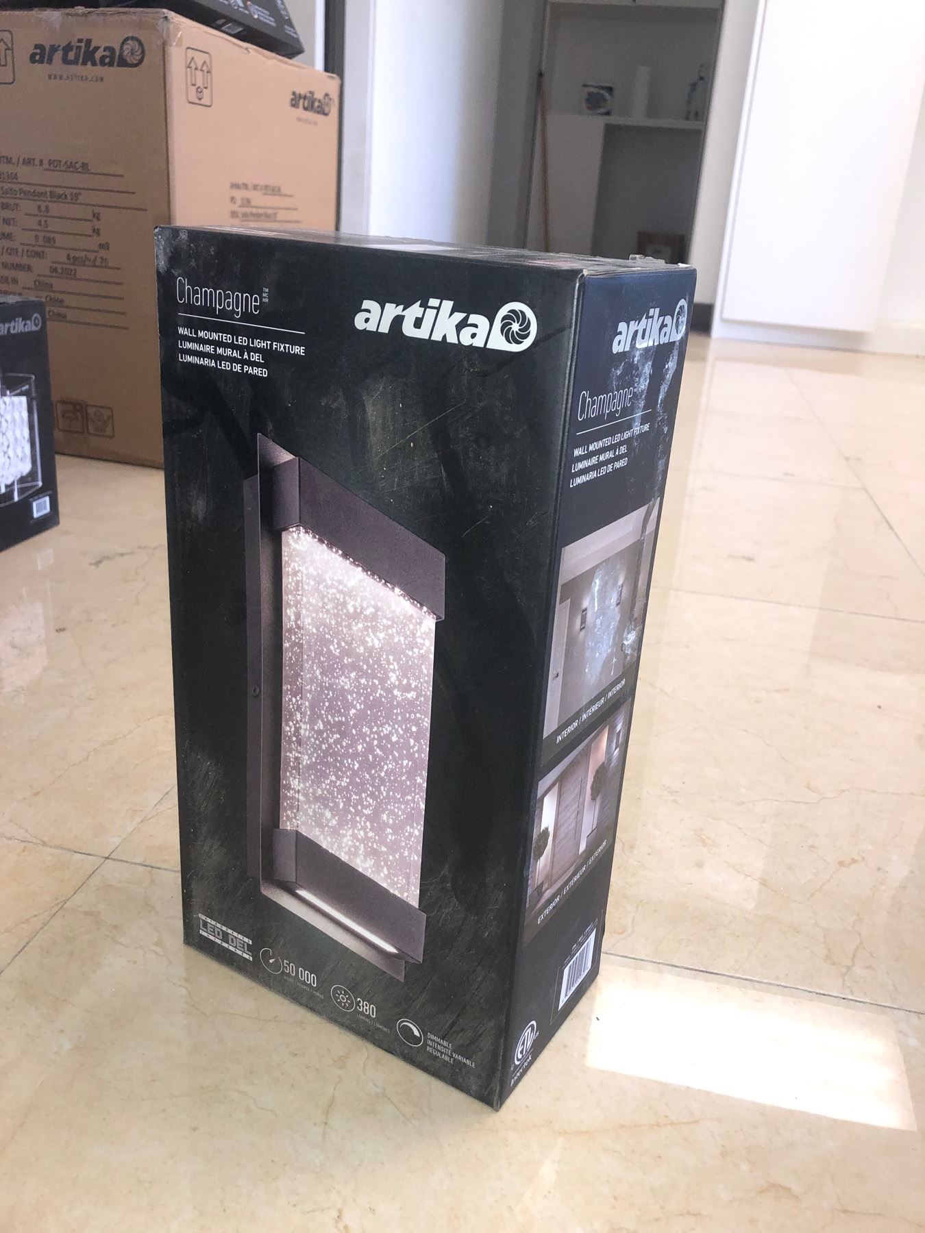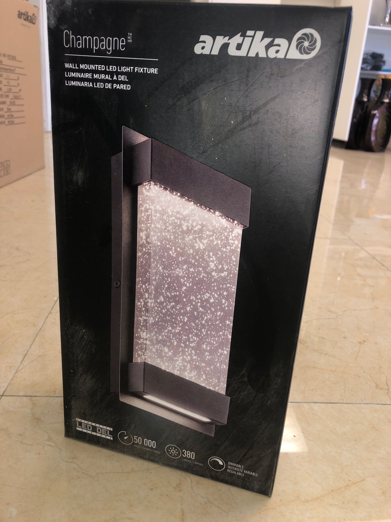 New single Artika Champagne wall mounted LED light fixture in box