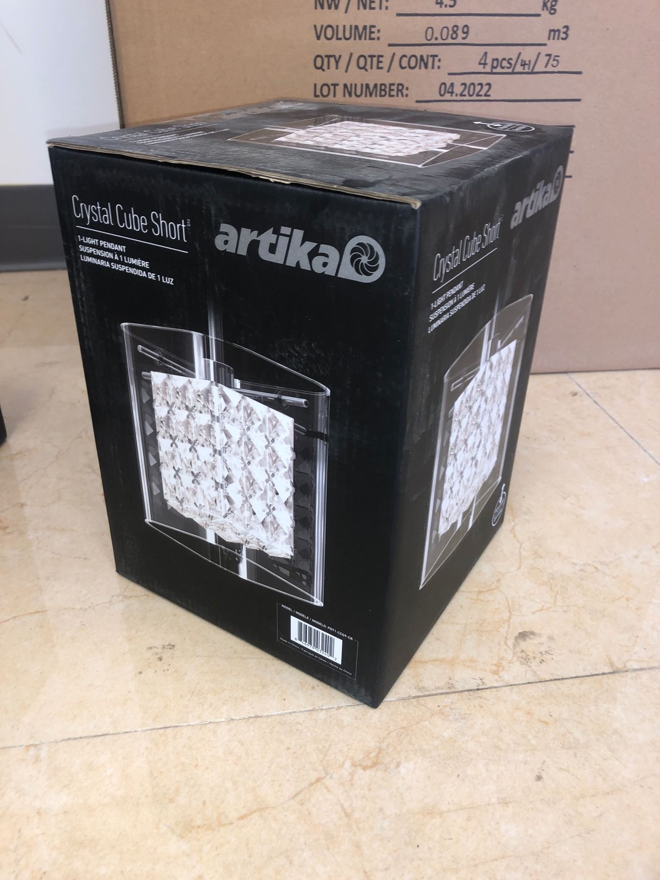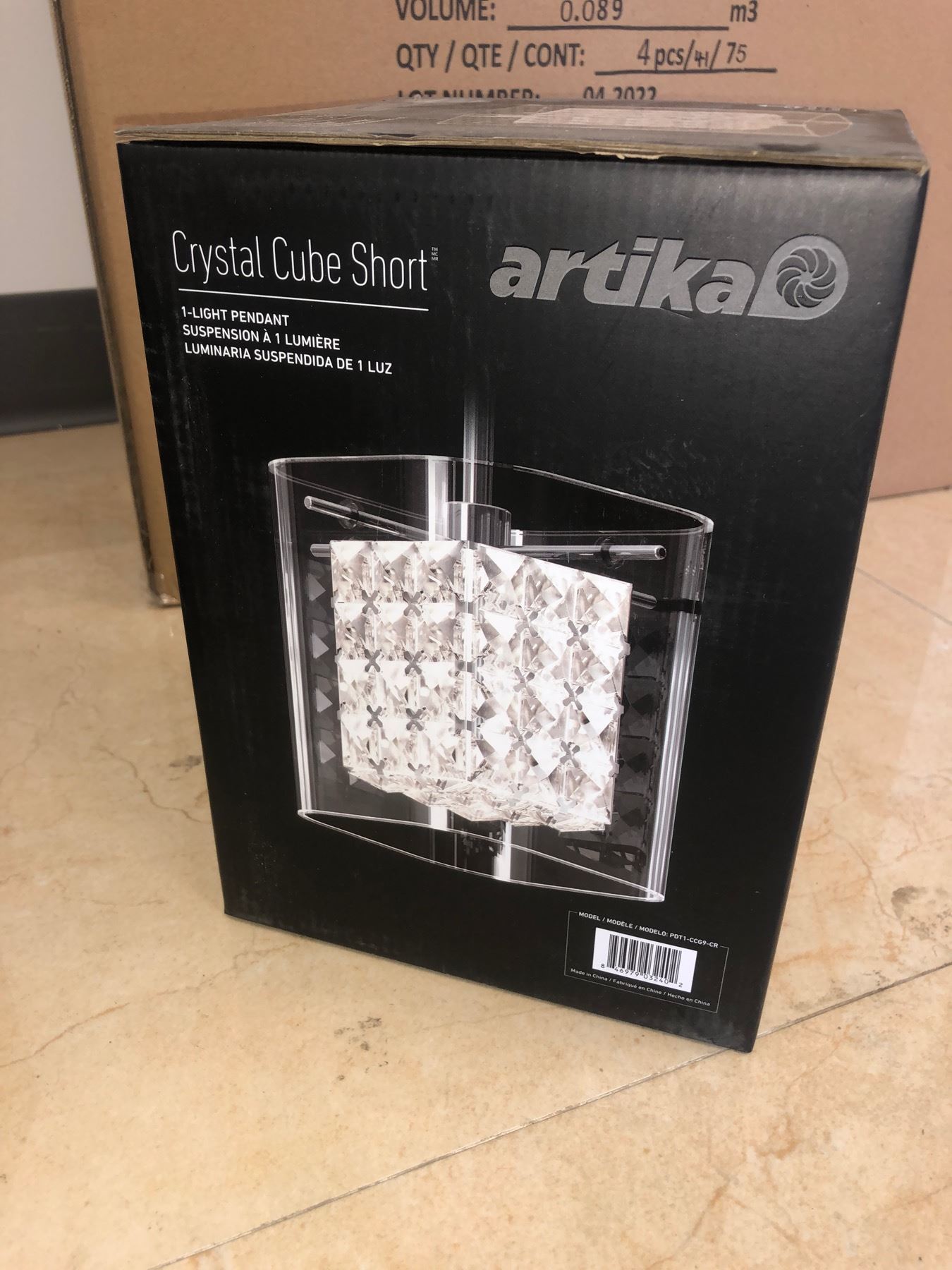New single Artika Crystal cube short pendant light in box