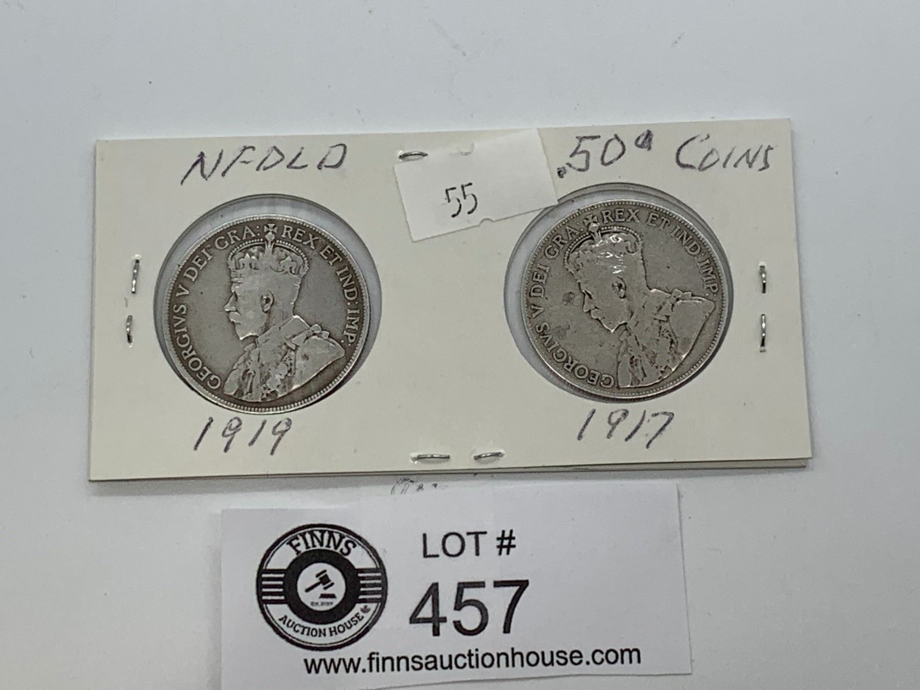 Newfoundland Silver 50 Cent Coins from 1917 and 1918