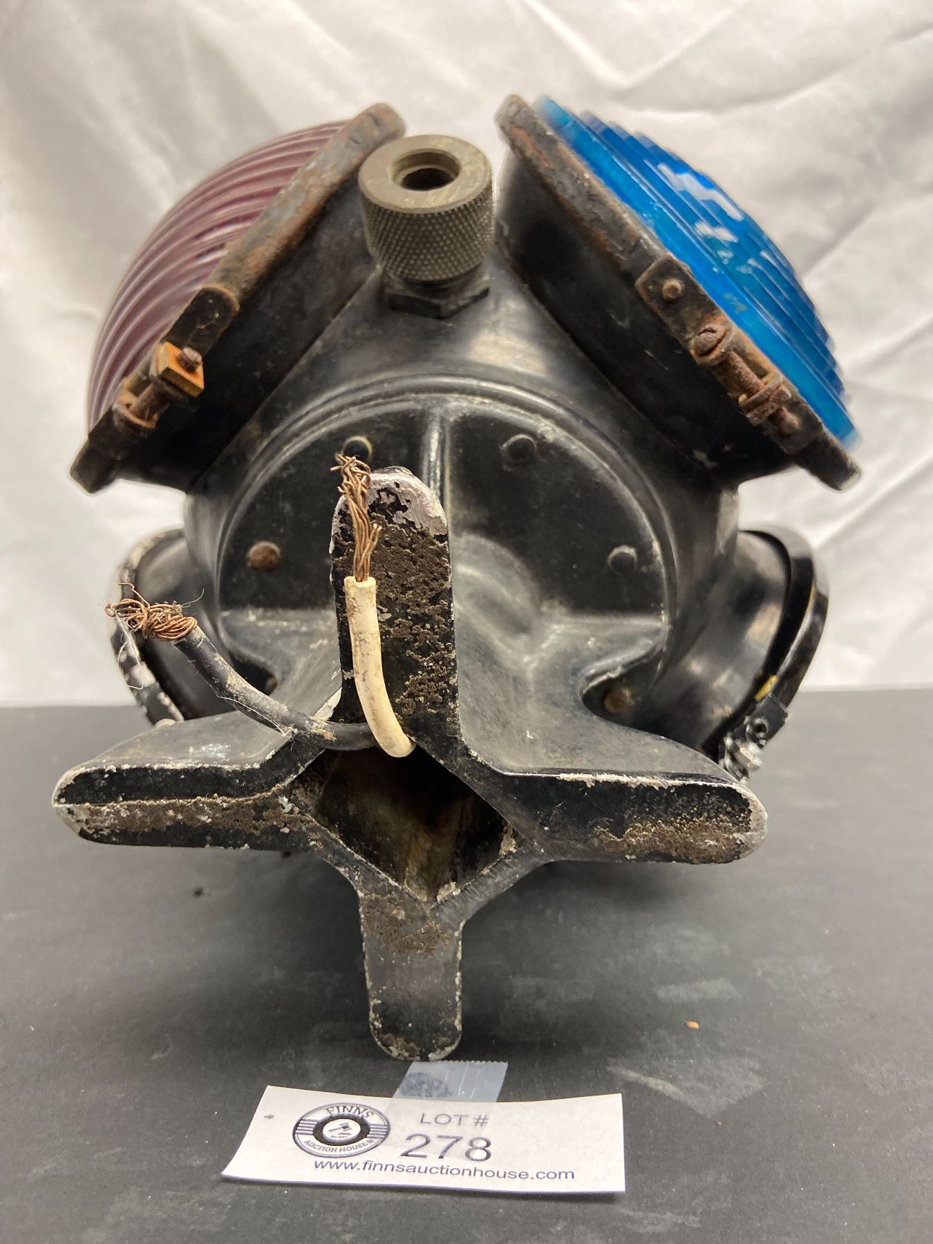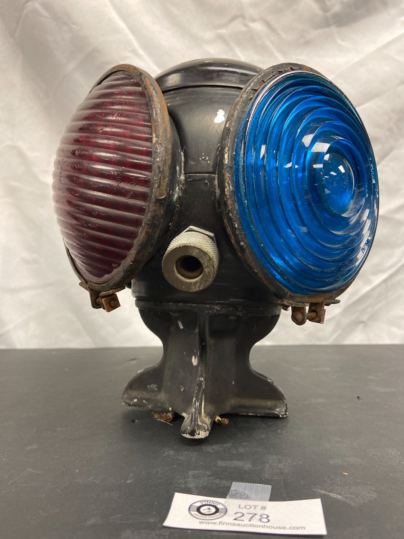 Nice Adlake Squat Switch Lamp Round Lamp with Square Base Marked Adlake on Top with Red and Green Lenses Marked 54928