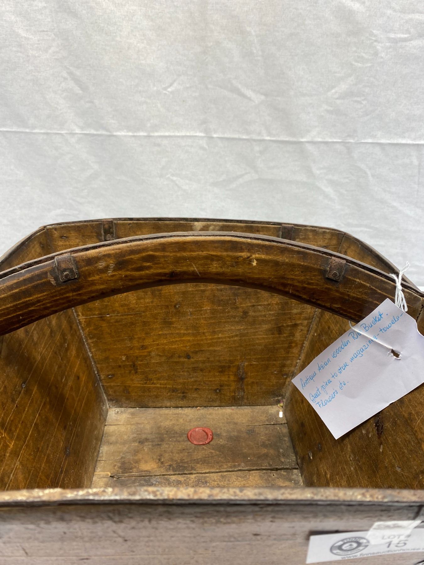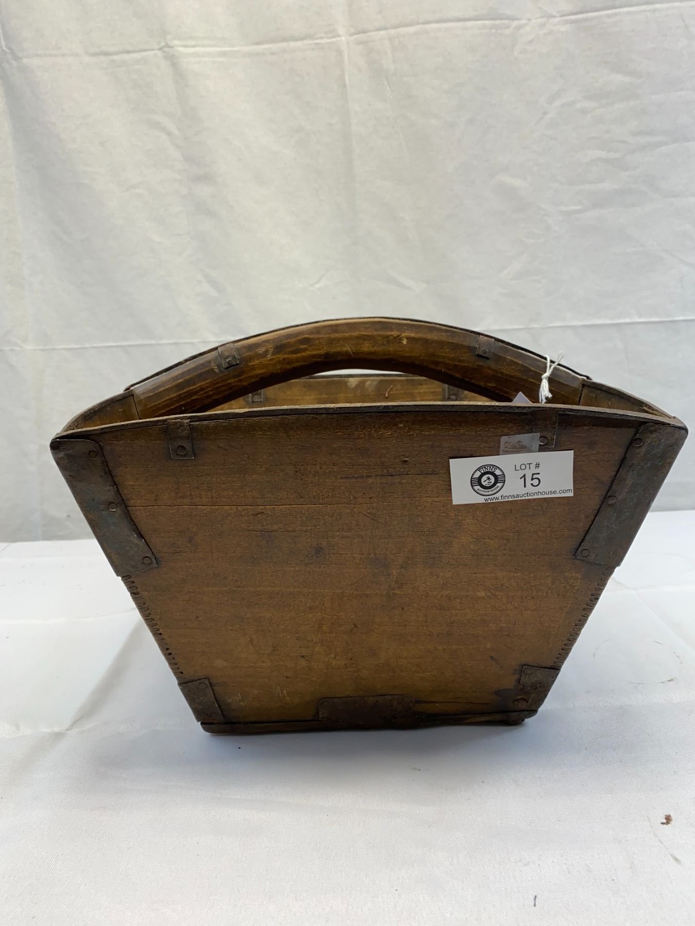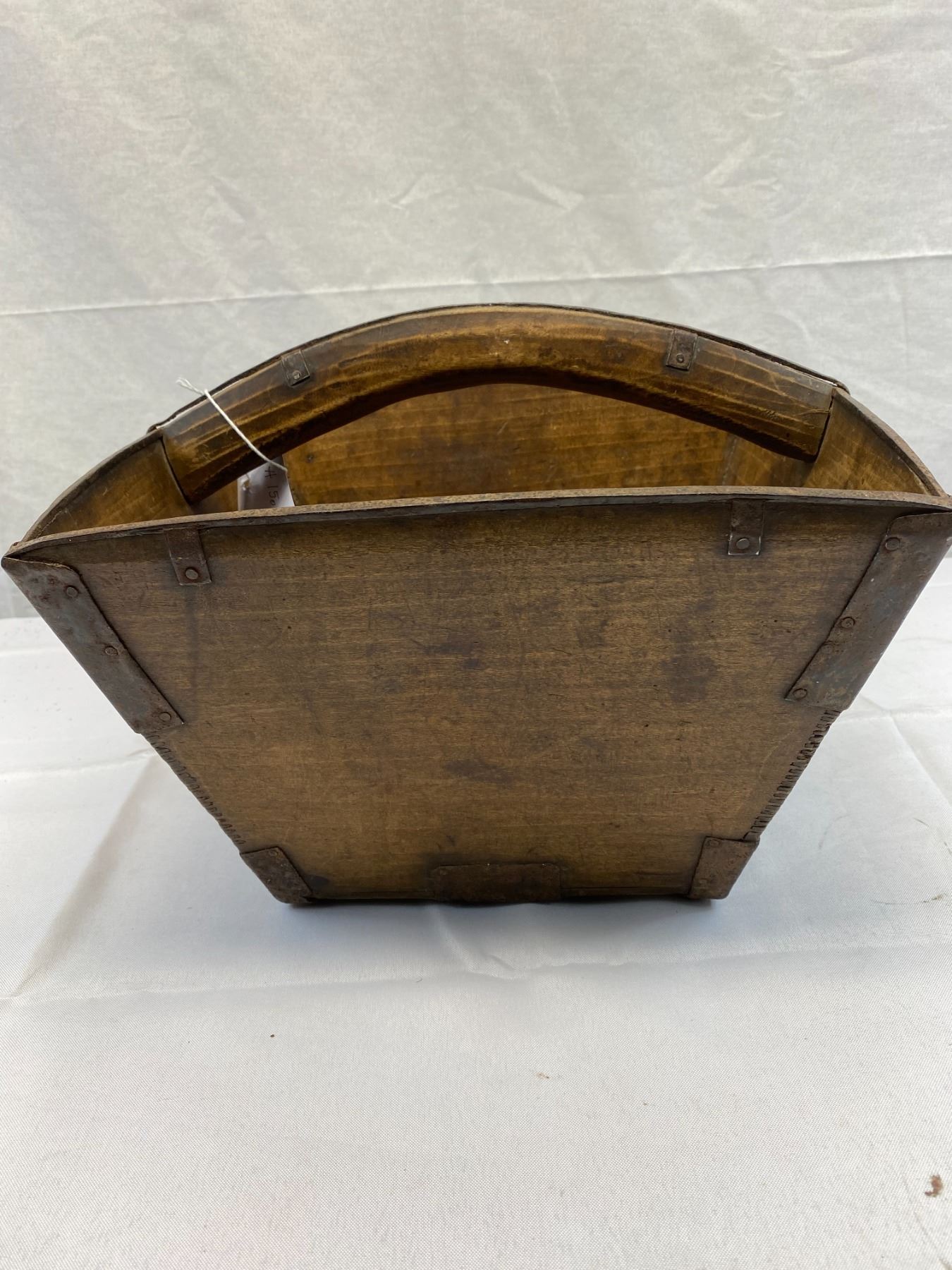 Nice Antique Asian Wooden Rice Bucket, 13"x13"x11"