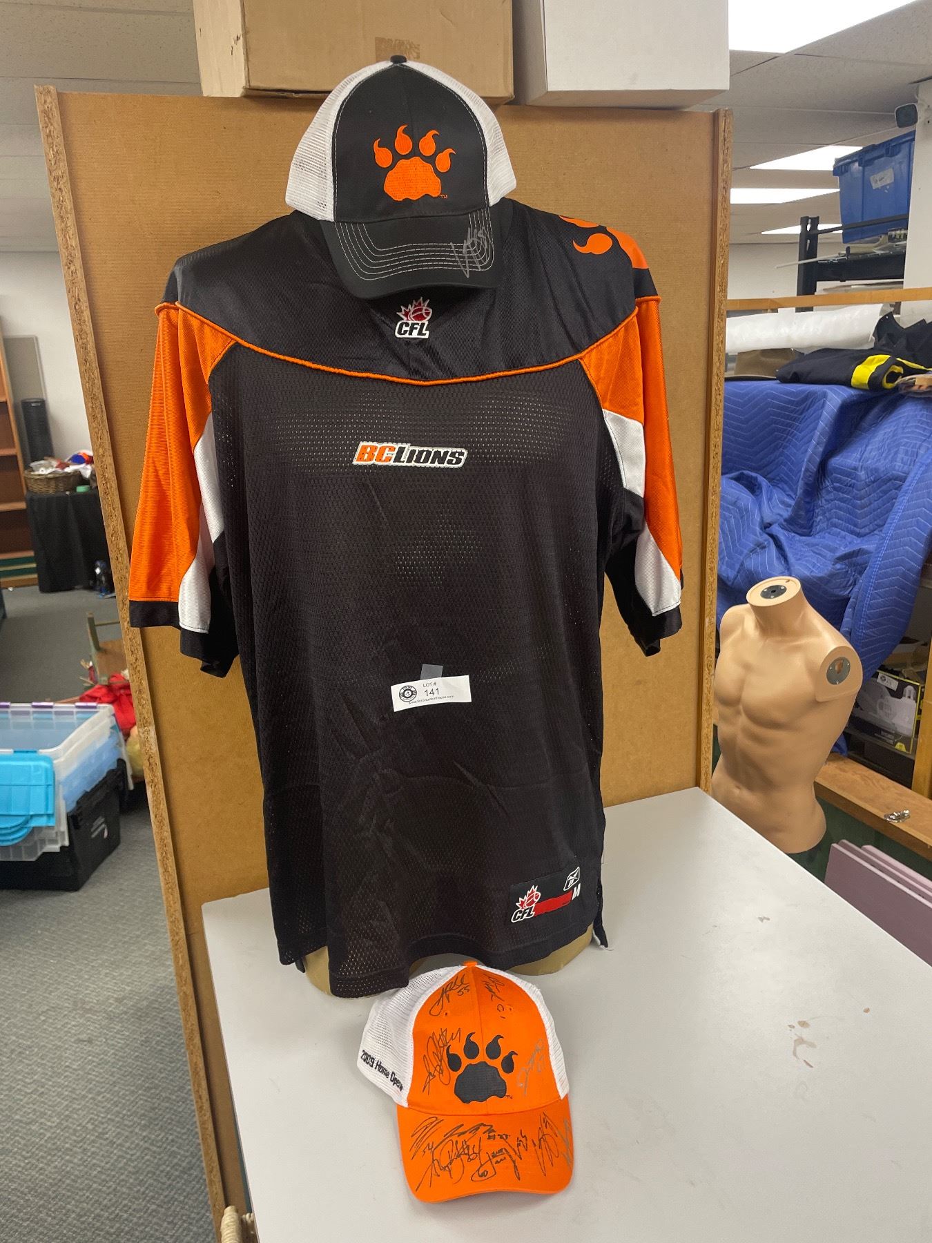 Nice BC Lions Lot! Jersey, and 2 Signed Caps. 1 Signed by Team.