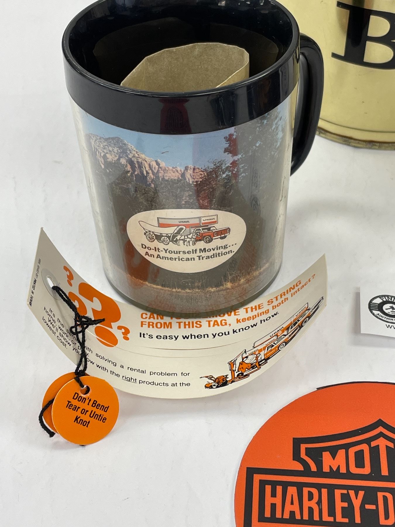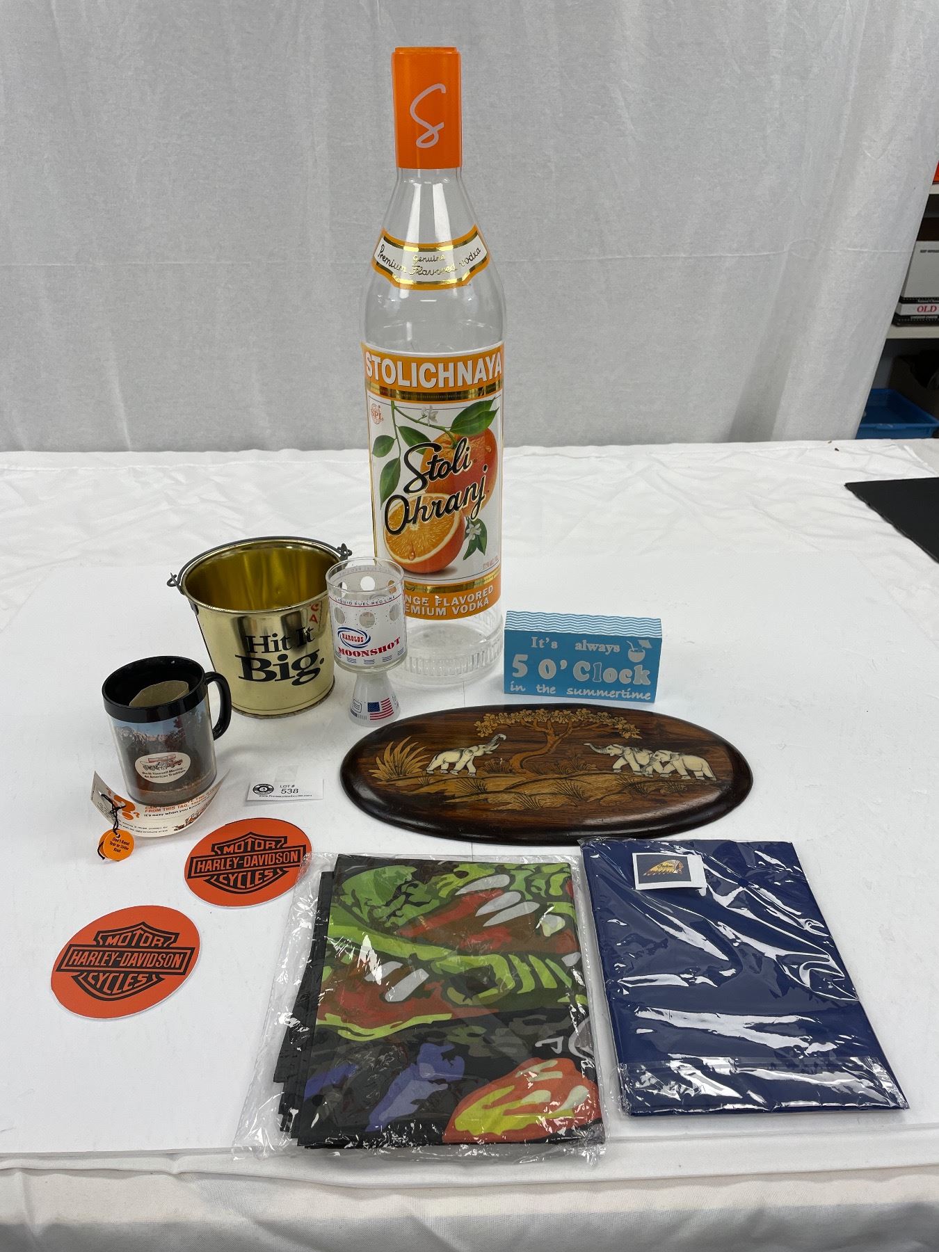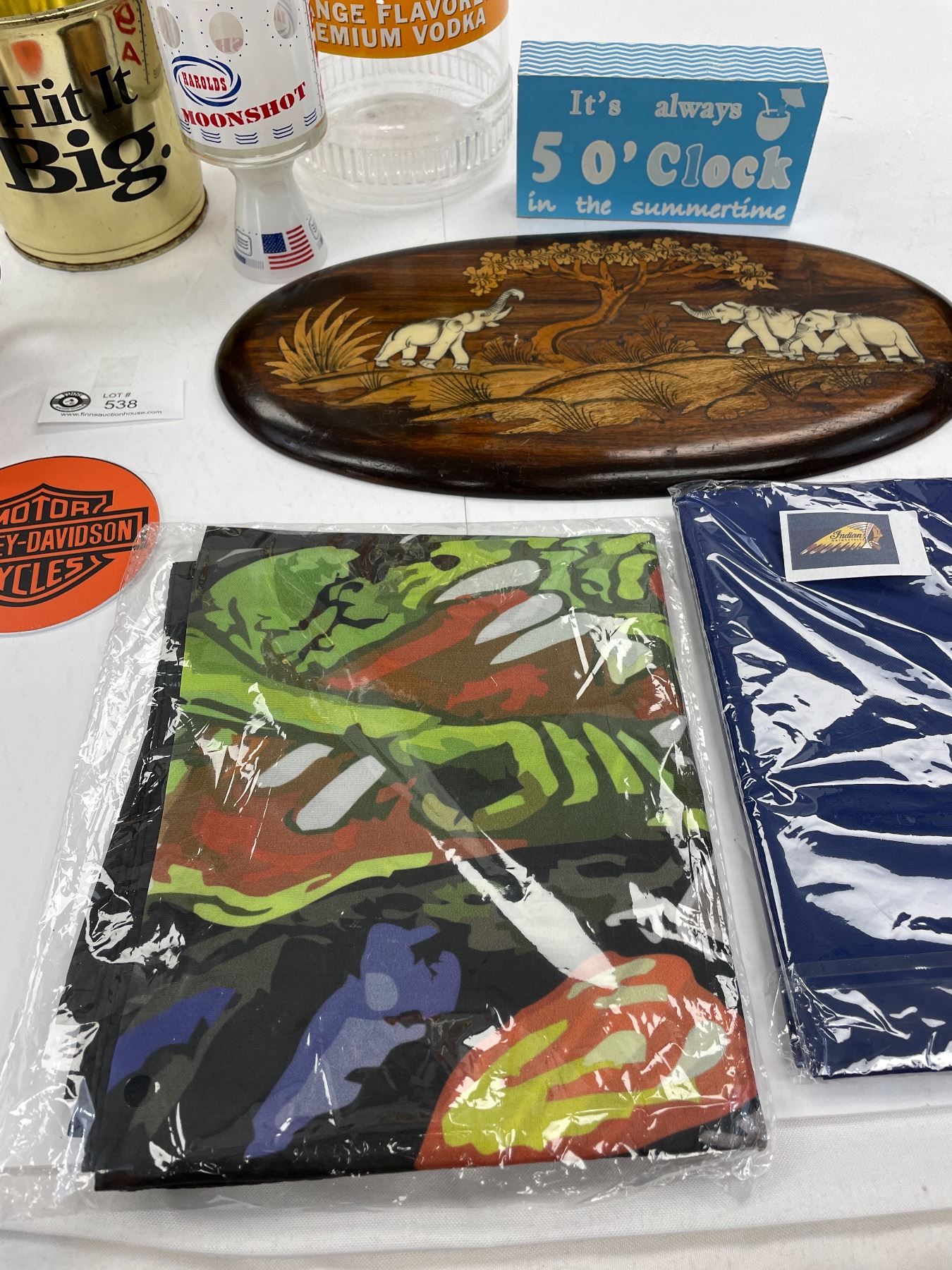 Nice Collectible Bar Lot Harley Davidson Coasters, Indian Motorcycle Flag, Uhaul Cup. Etc.