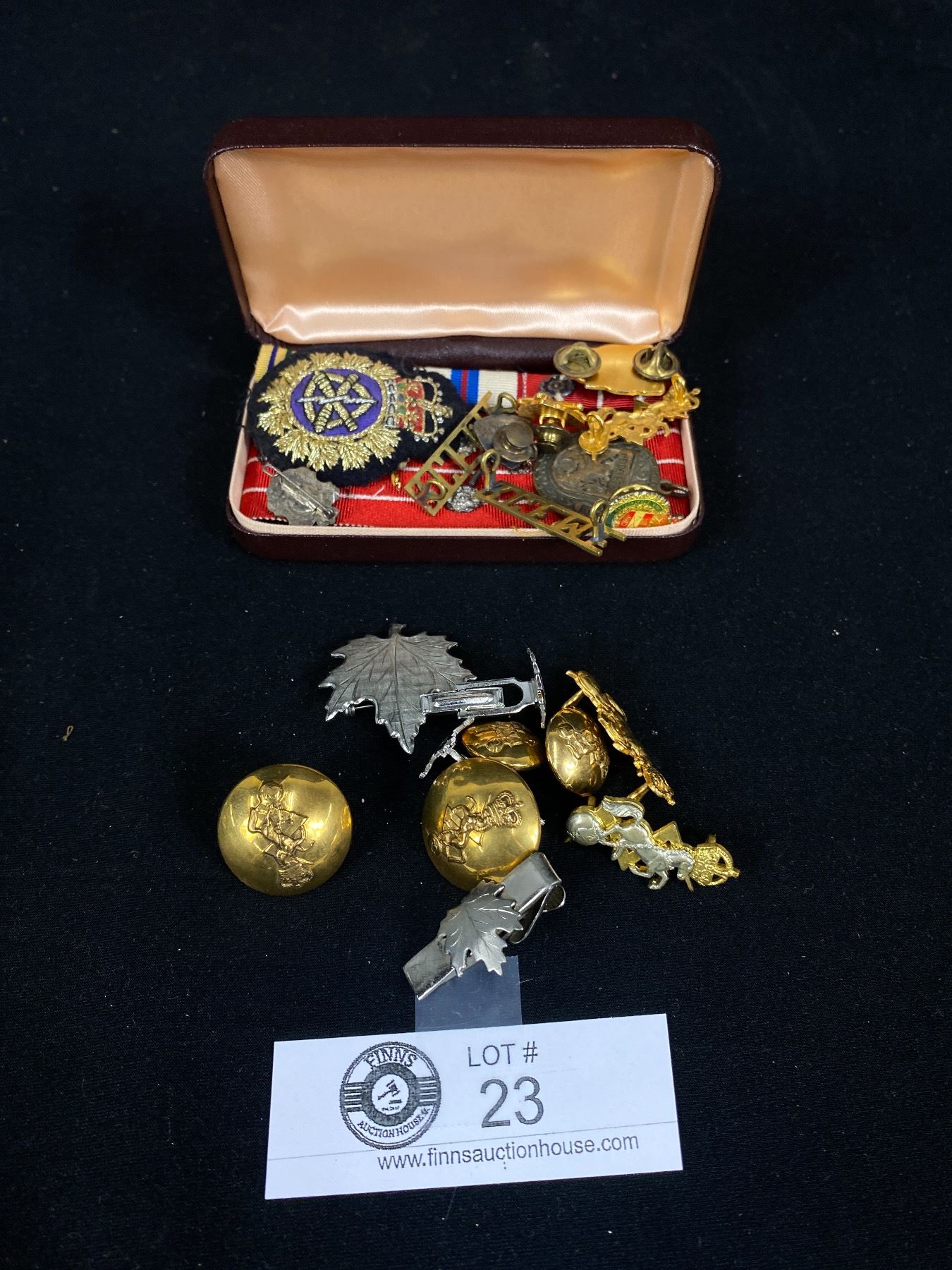 Nice Collectible Lot of Military Cap Badges and Collars and Buttons