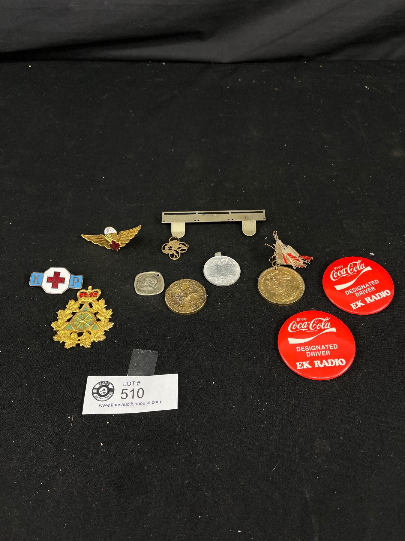 Nice Collectible Lot of Vintage Military Pins and 2 Coke Buttons