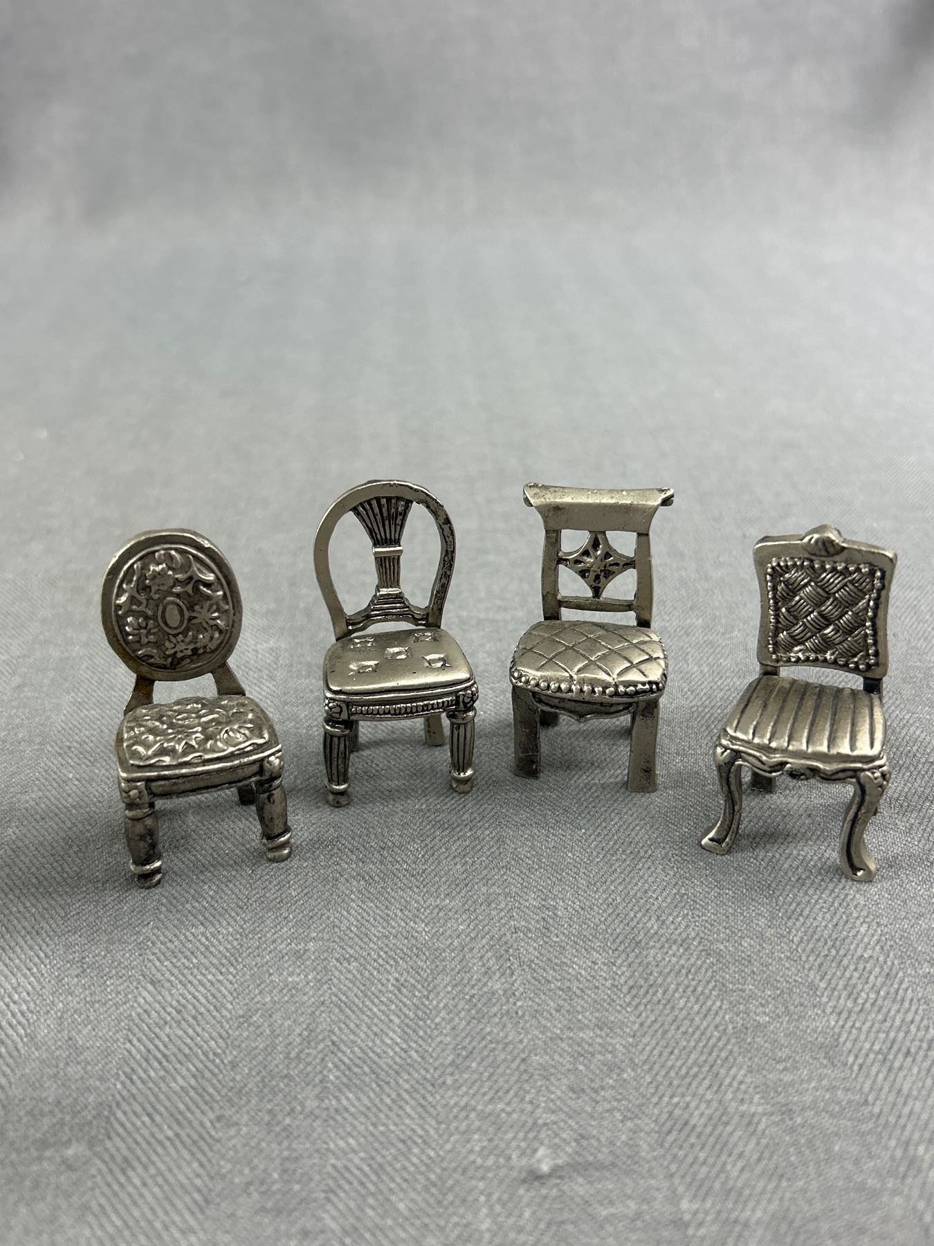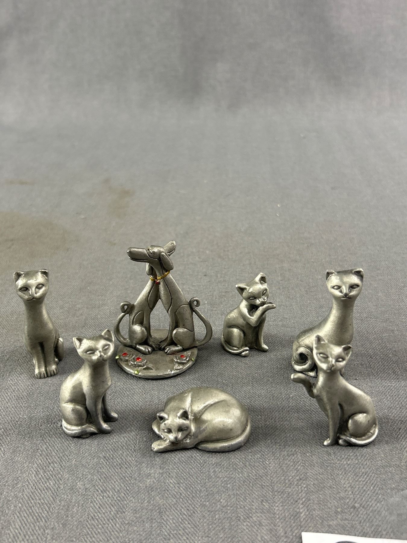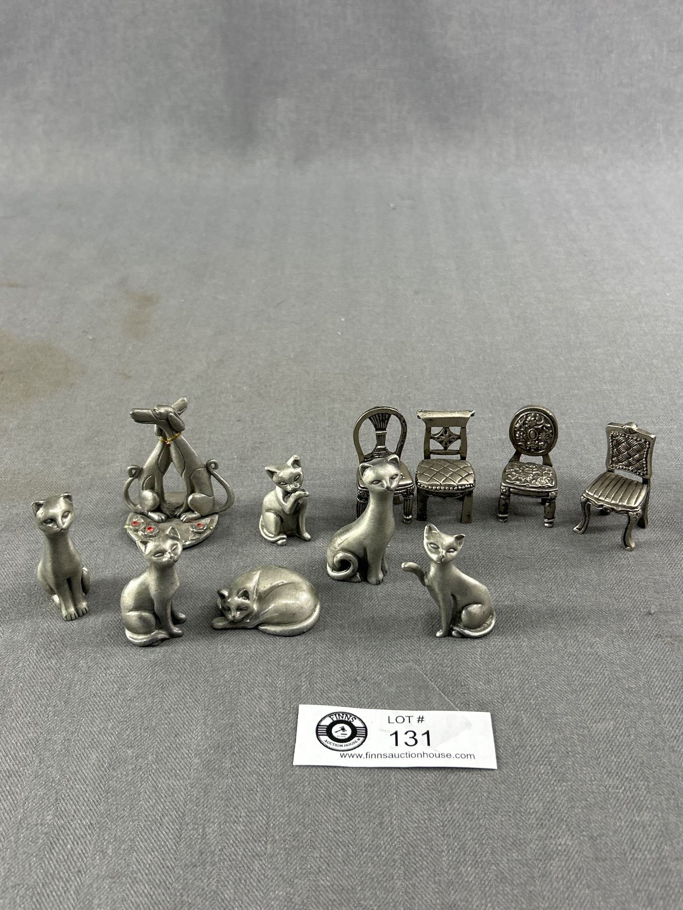 Nice Collection Of Pewter Miniatures - Chairs, Cats, Dogs