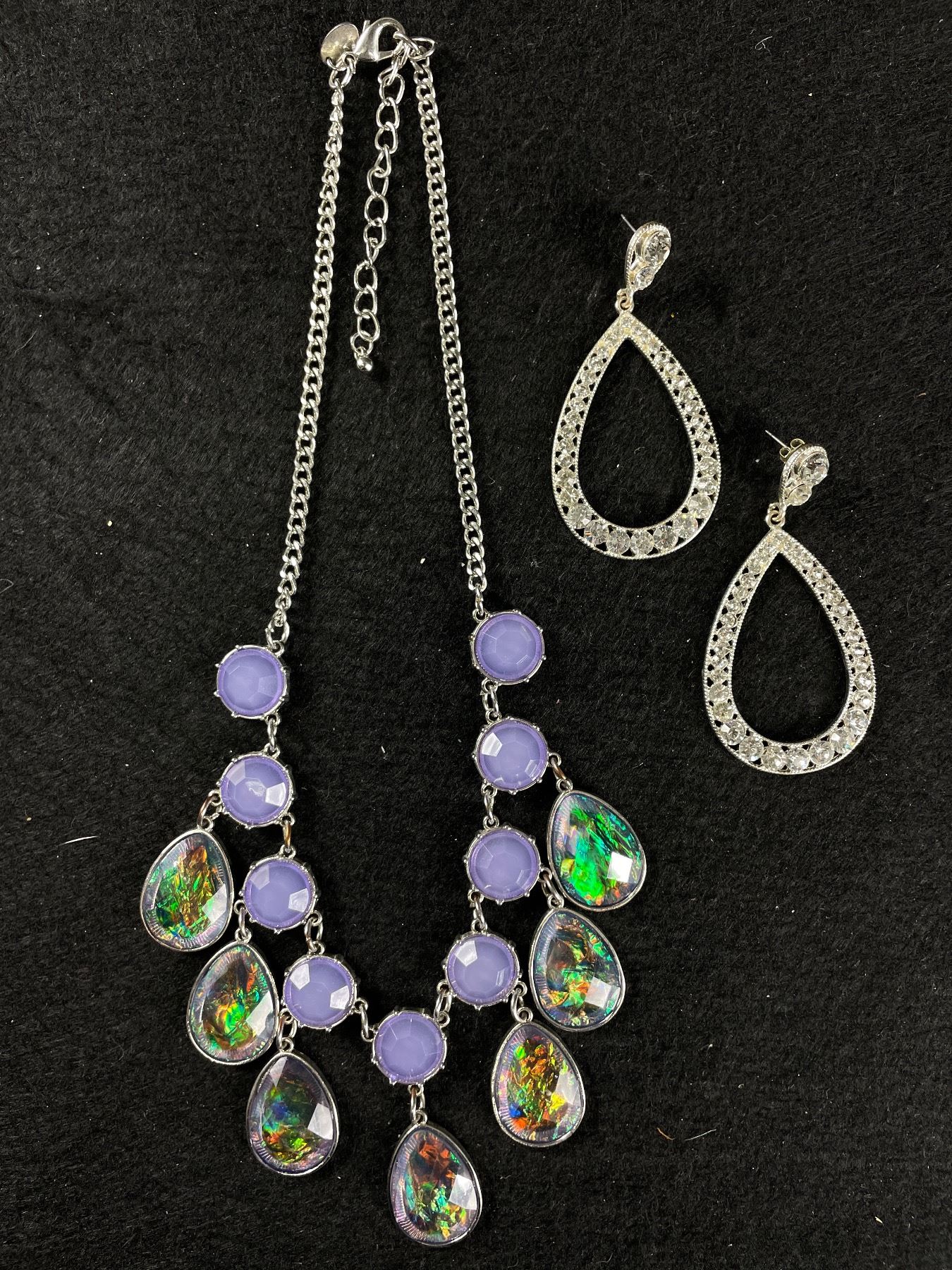 Nice Costume Jewelry Lot with Lavender Coloured Stone with Drop Crystal and Vintage Rhinestone Earrings