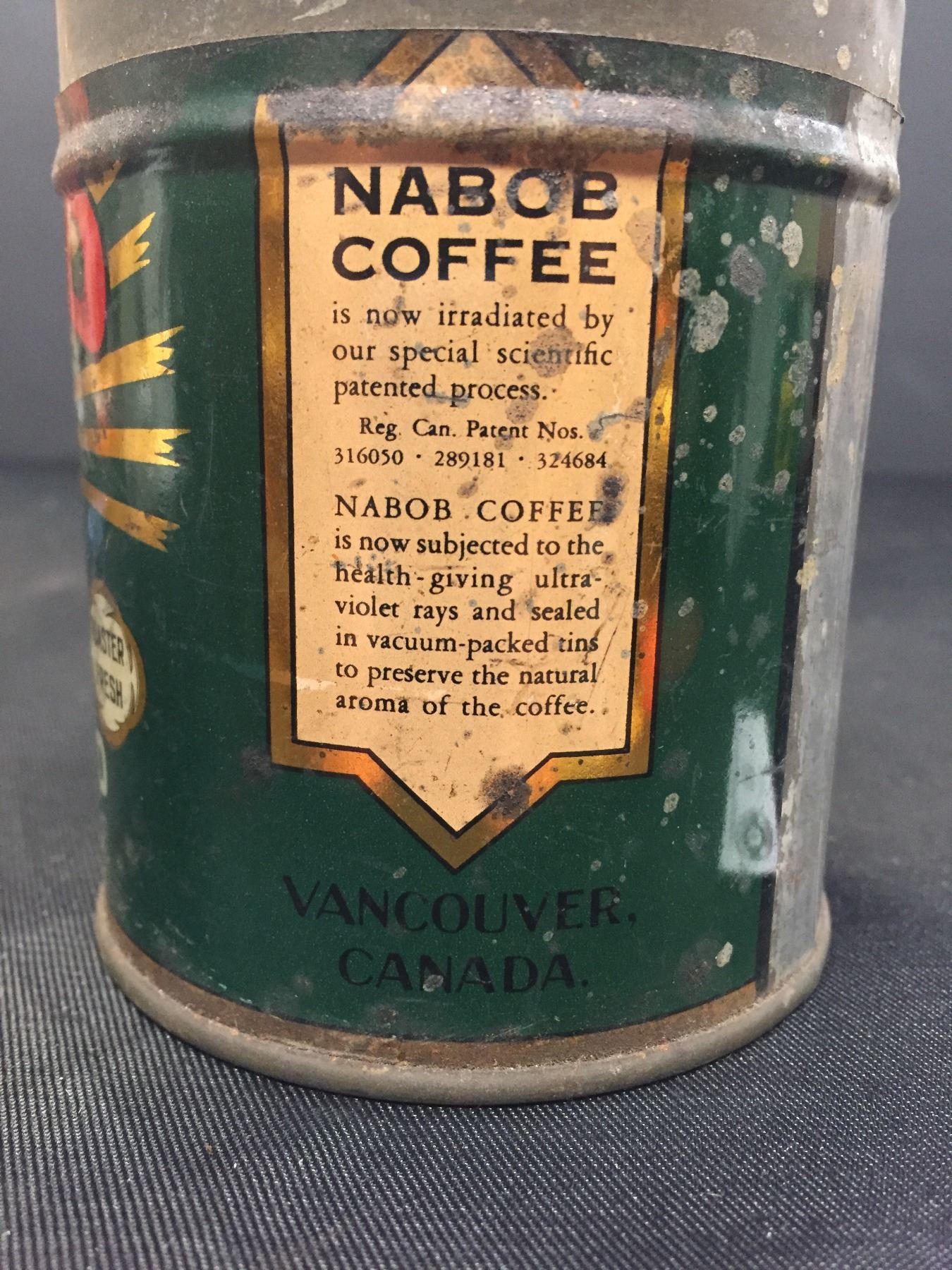 Nice Early Nabob Coffee Sample Tin. " Not To Be Sold" Vancouver BC. 7.5 Ounce Tin. No Lid