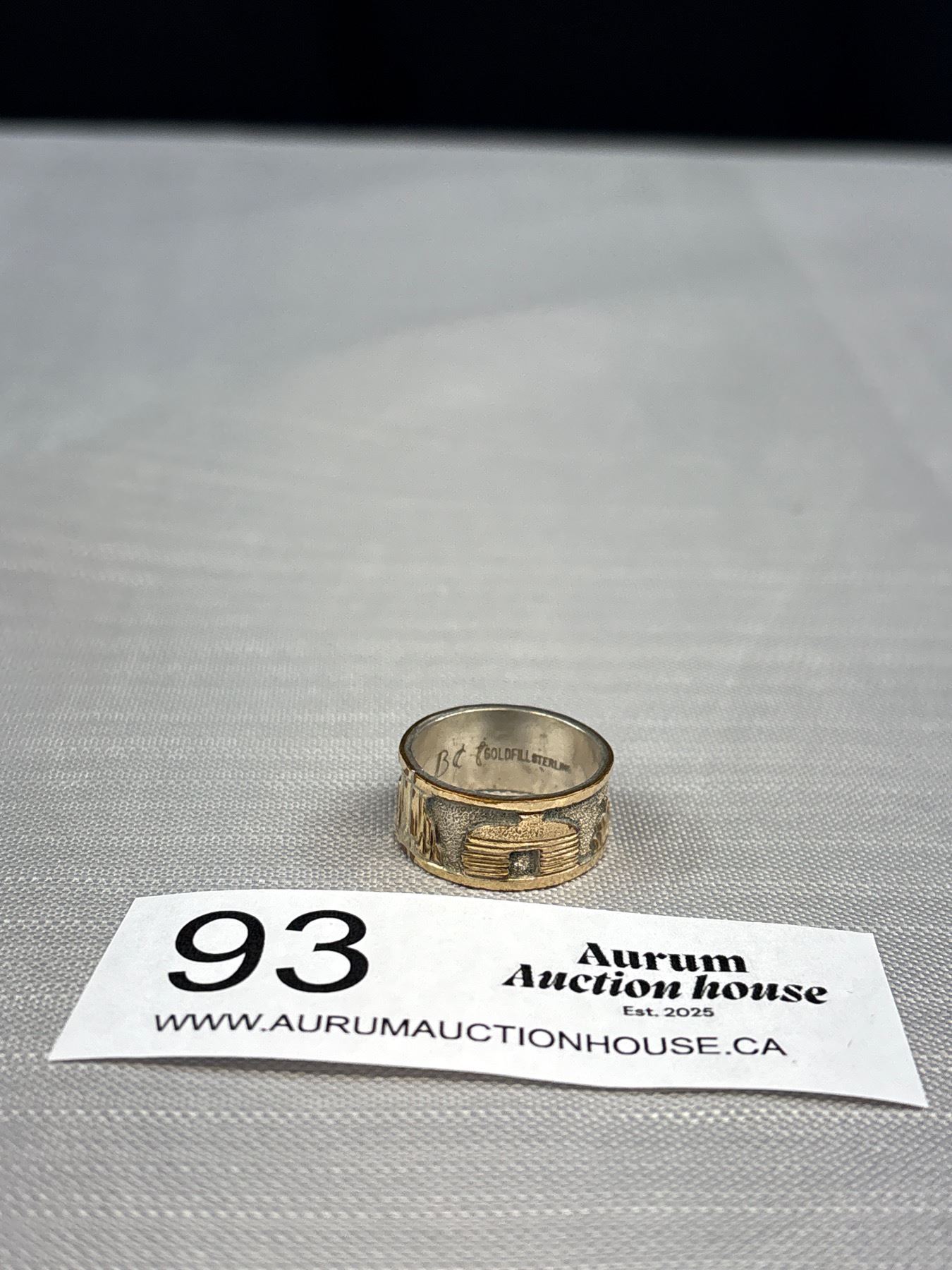 Nice First Nation Sterling Silver w/ Gold Ring Band, Signed B.C. Marked Gold Fill Sterling