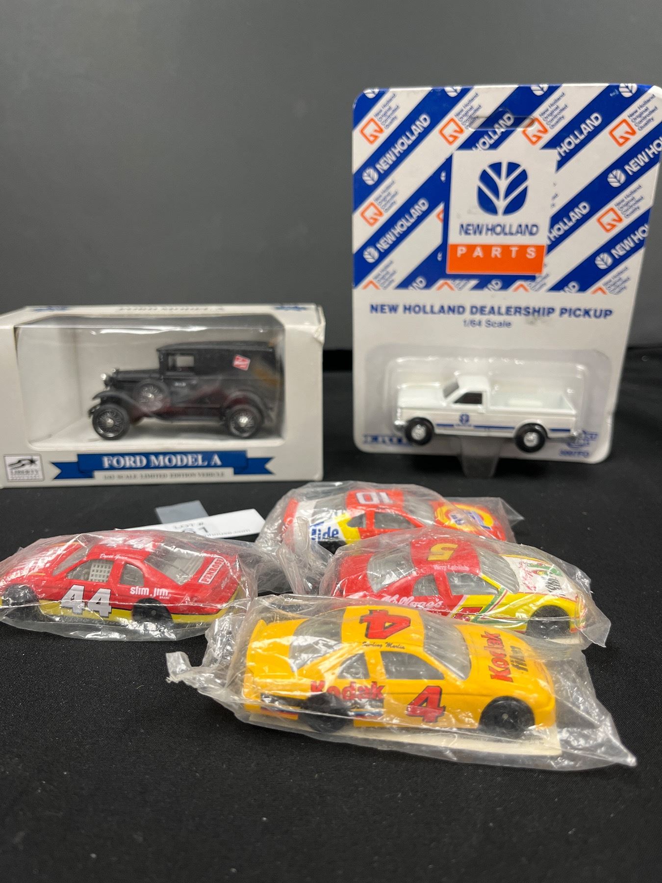 Nice Little Automotive Lot. Ford Model A 1:43 Scale in Box.Dealership Truck and 4 Cars in Packages.