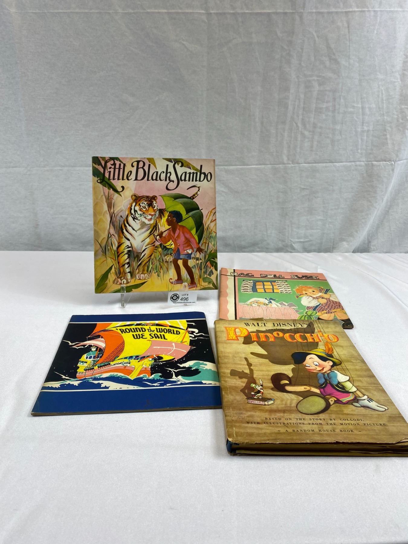 Nice Lot Of 4 Vintage Children's Books, Pinocchio, Etc.