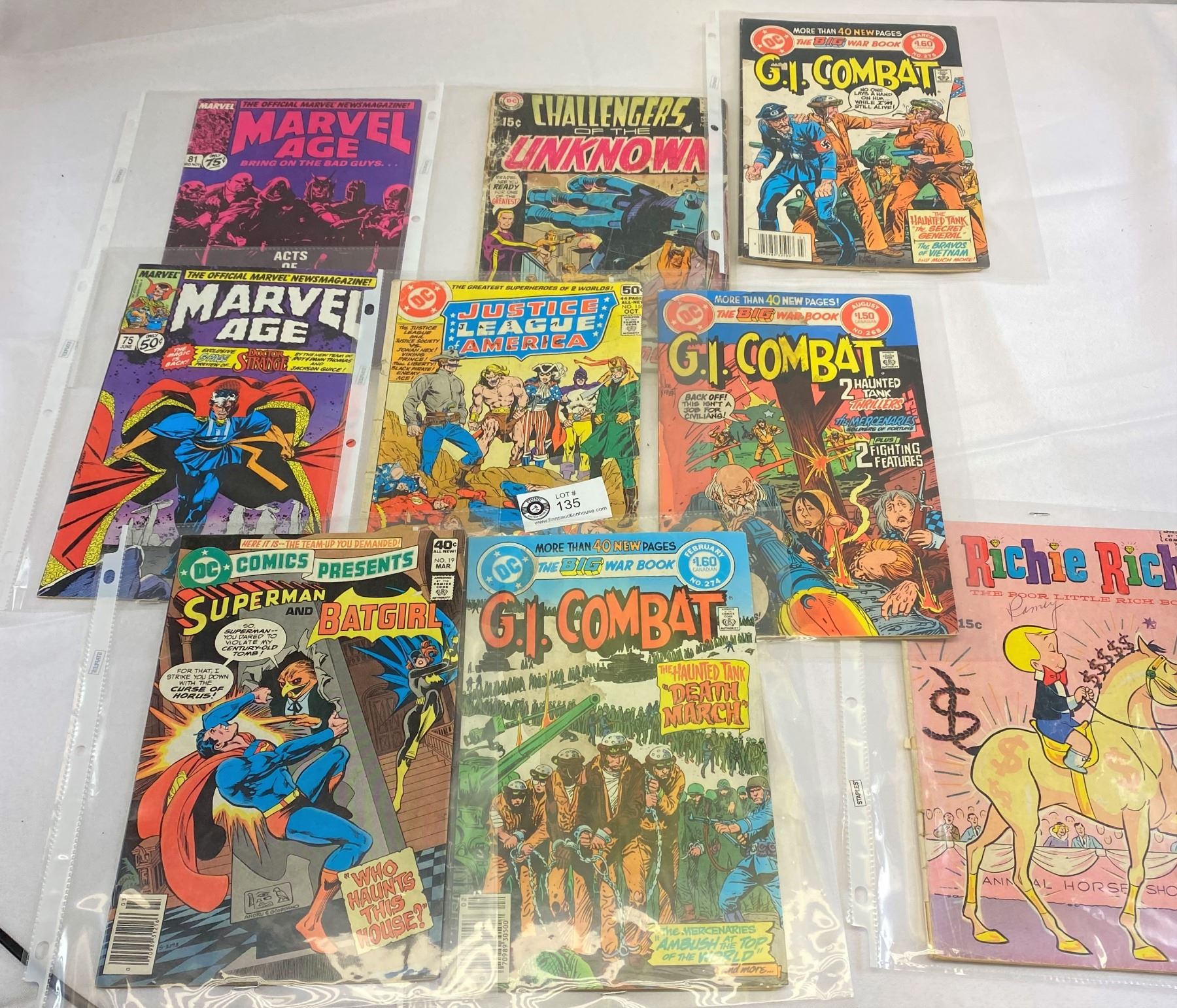 Nice Lot Of 9 Vintage Comics In Sleeves, DC, G.I. Combat, Superman, Marvel Age, Etc.
