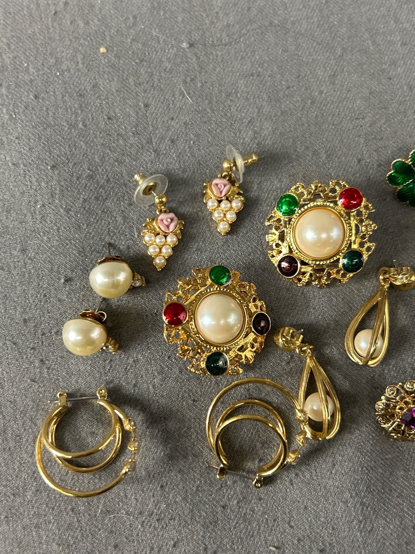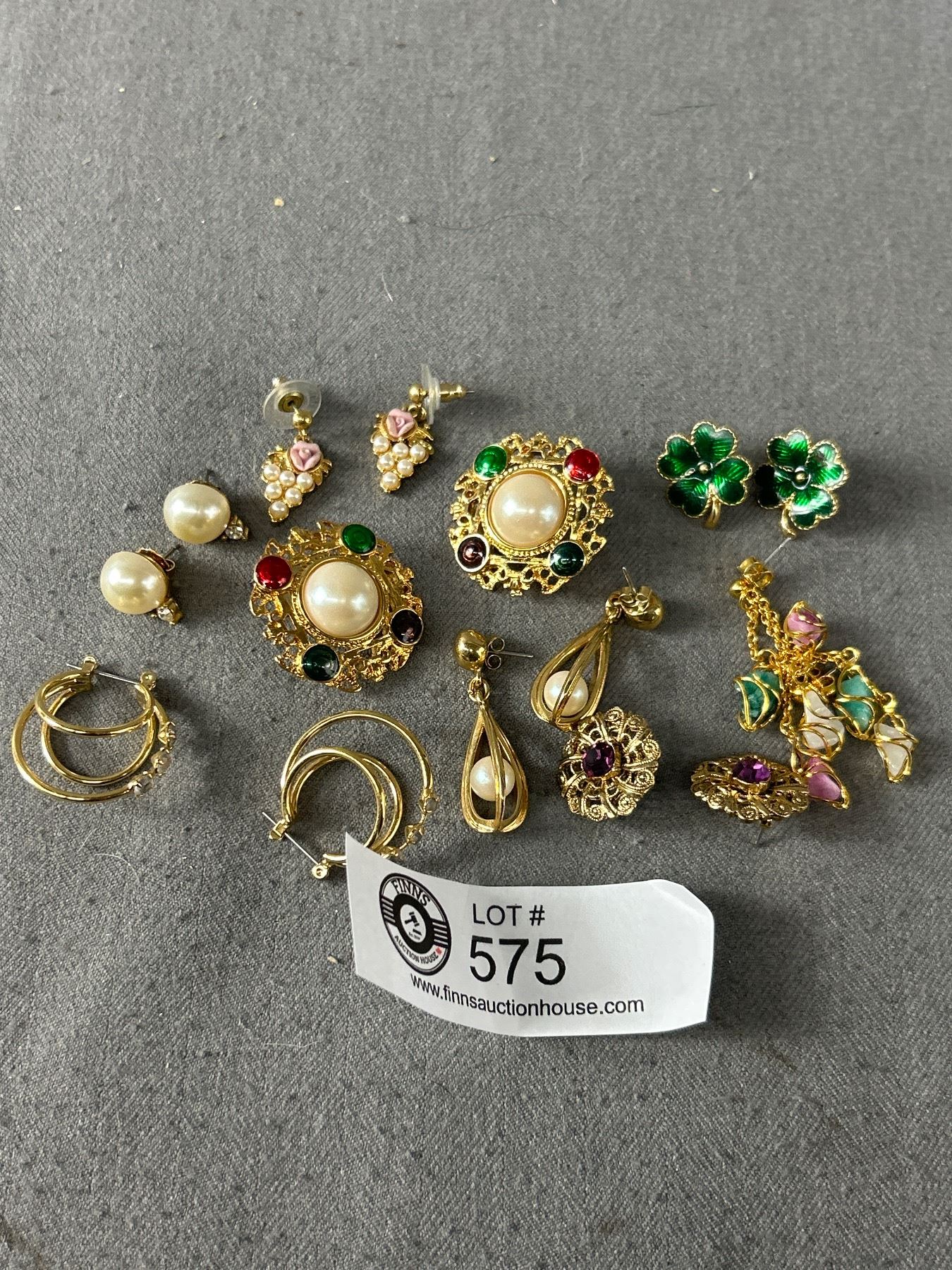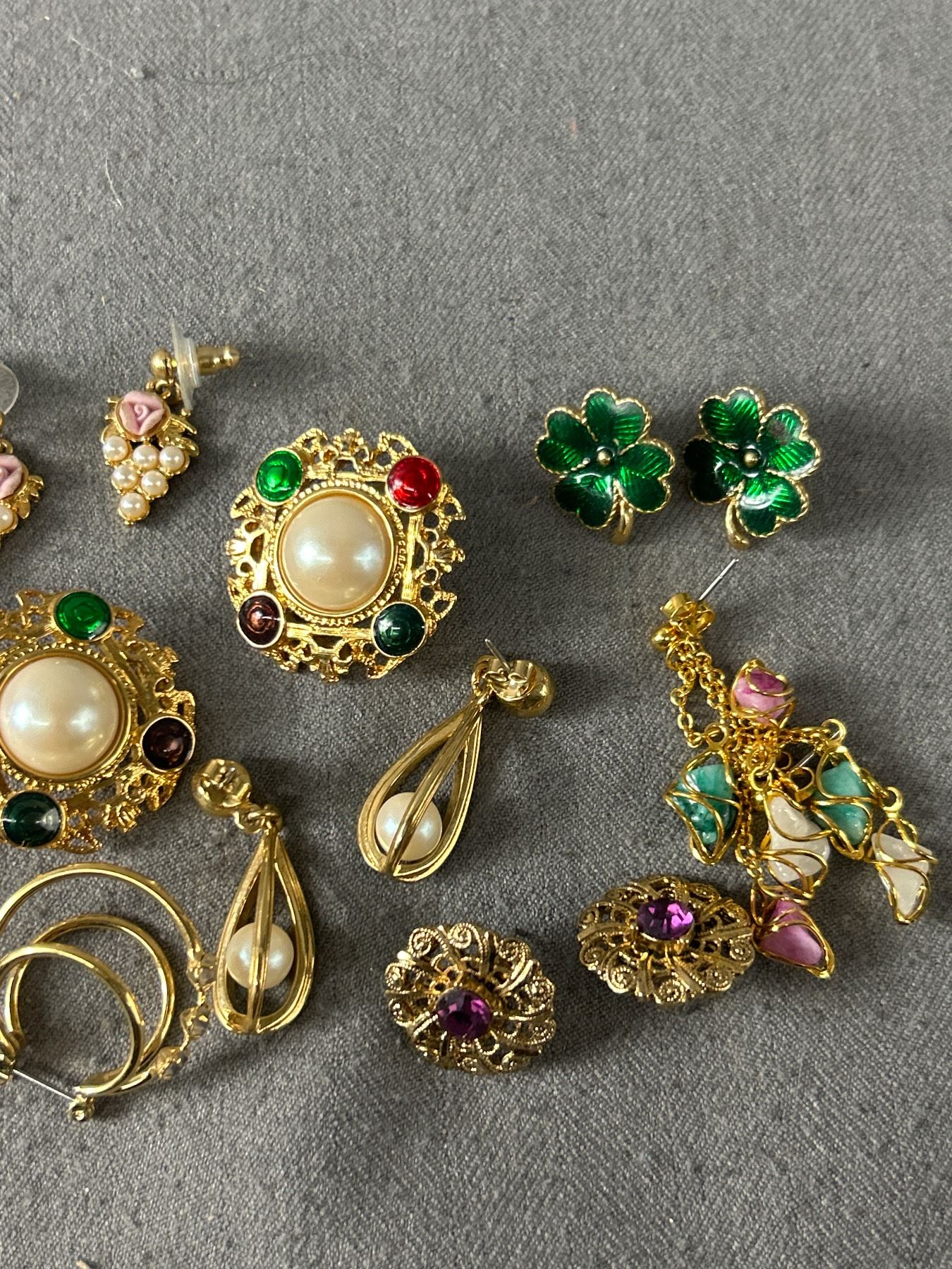 Nice Lot Of Fashion Earring w/ Rhinestones & White Beads