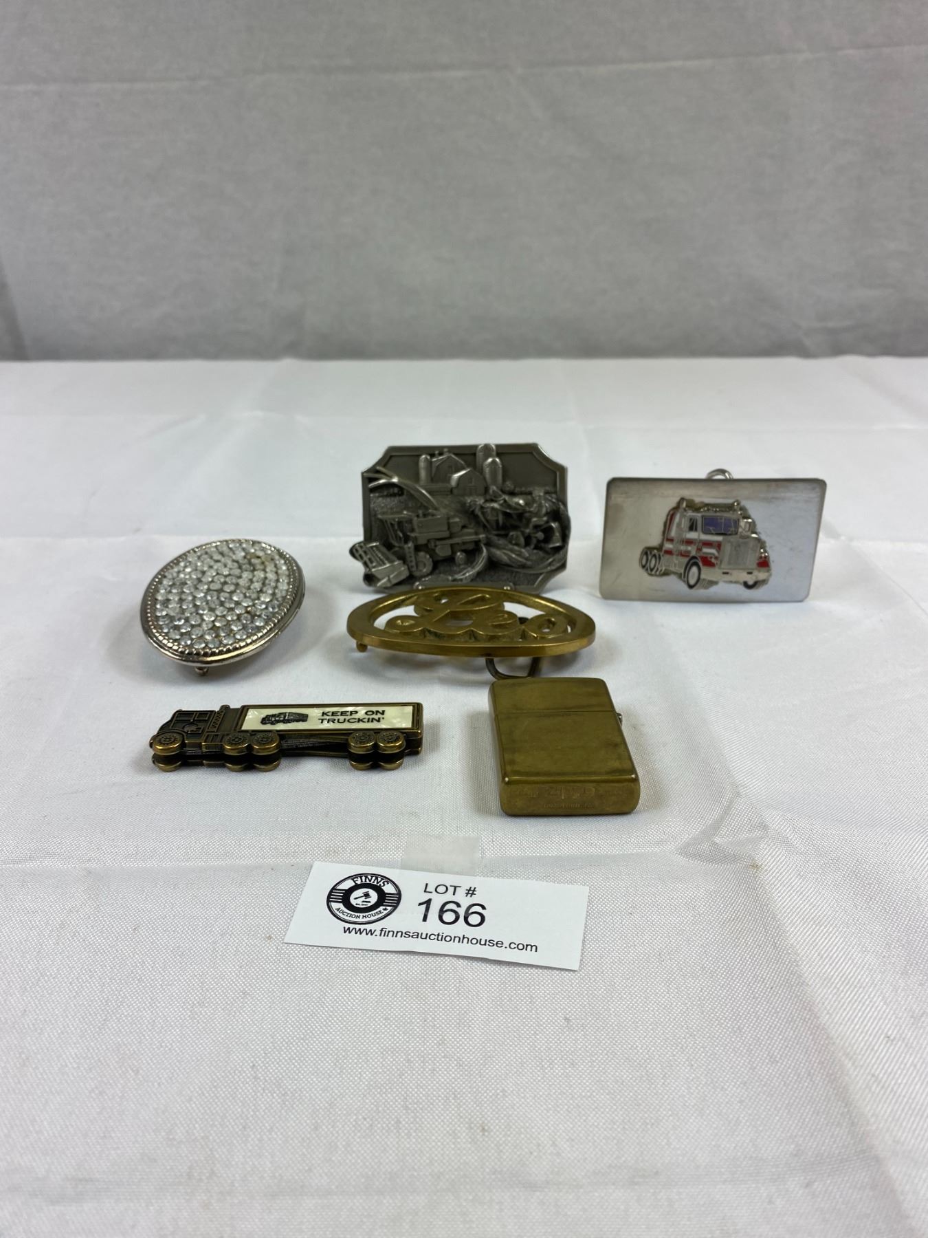 Nice Lot Of Vintage Belt Buckles And Solid Brass Zippo Lighter