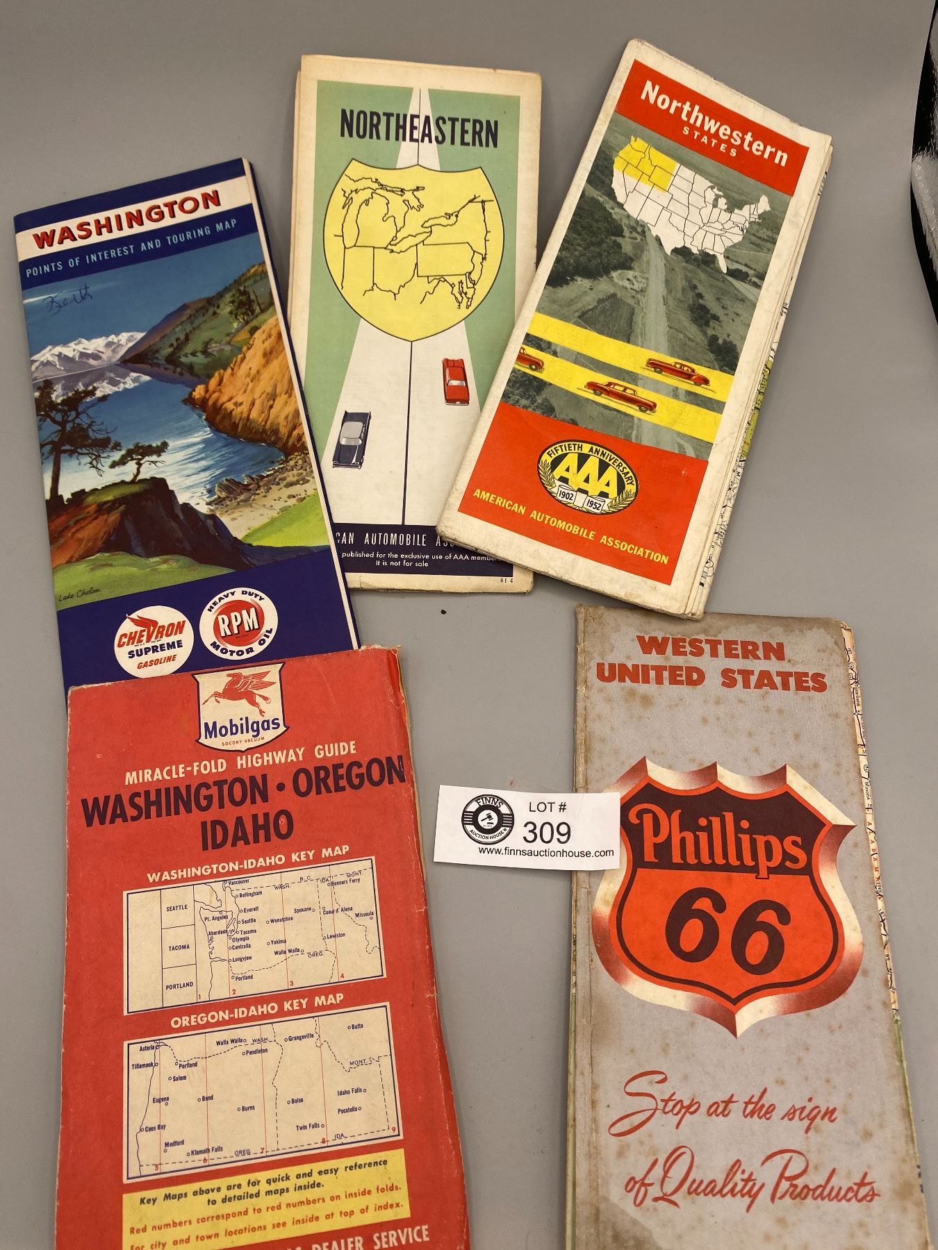 Nice Lot Of Vintage Road Maps, Mobilgas, Phillips 66 Etc...