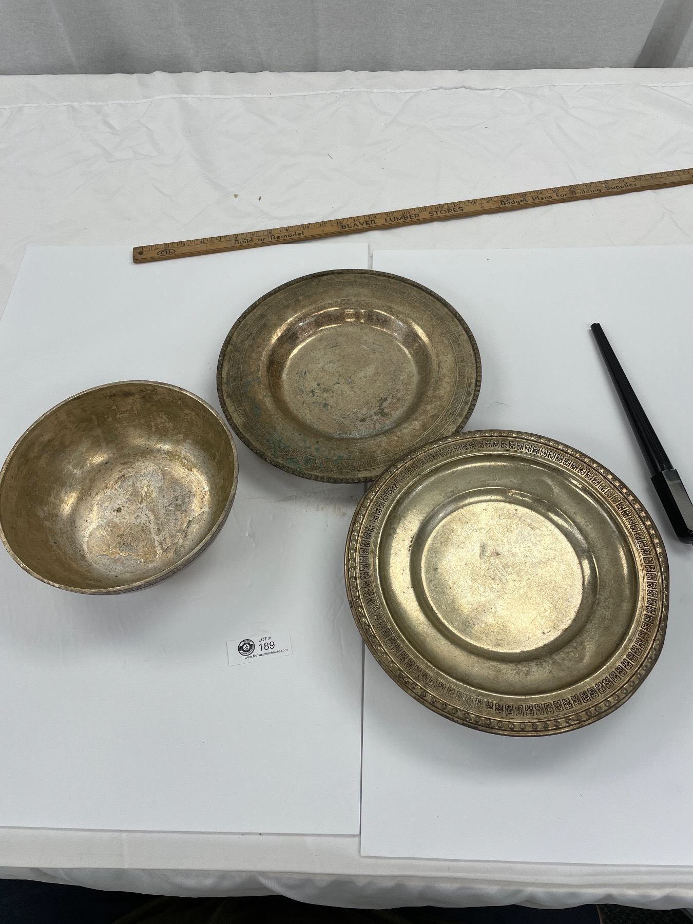 Nice Lot of 3 Vintage Brass Plates and Bowl