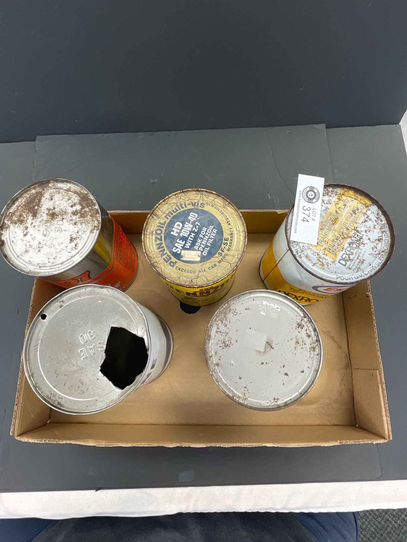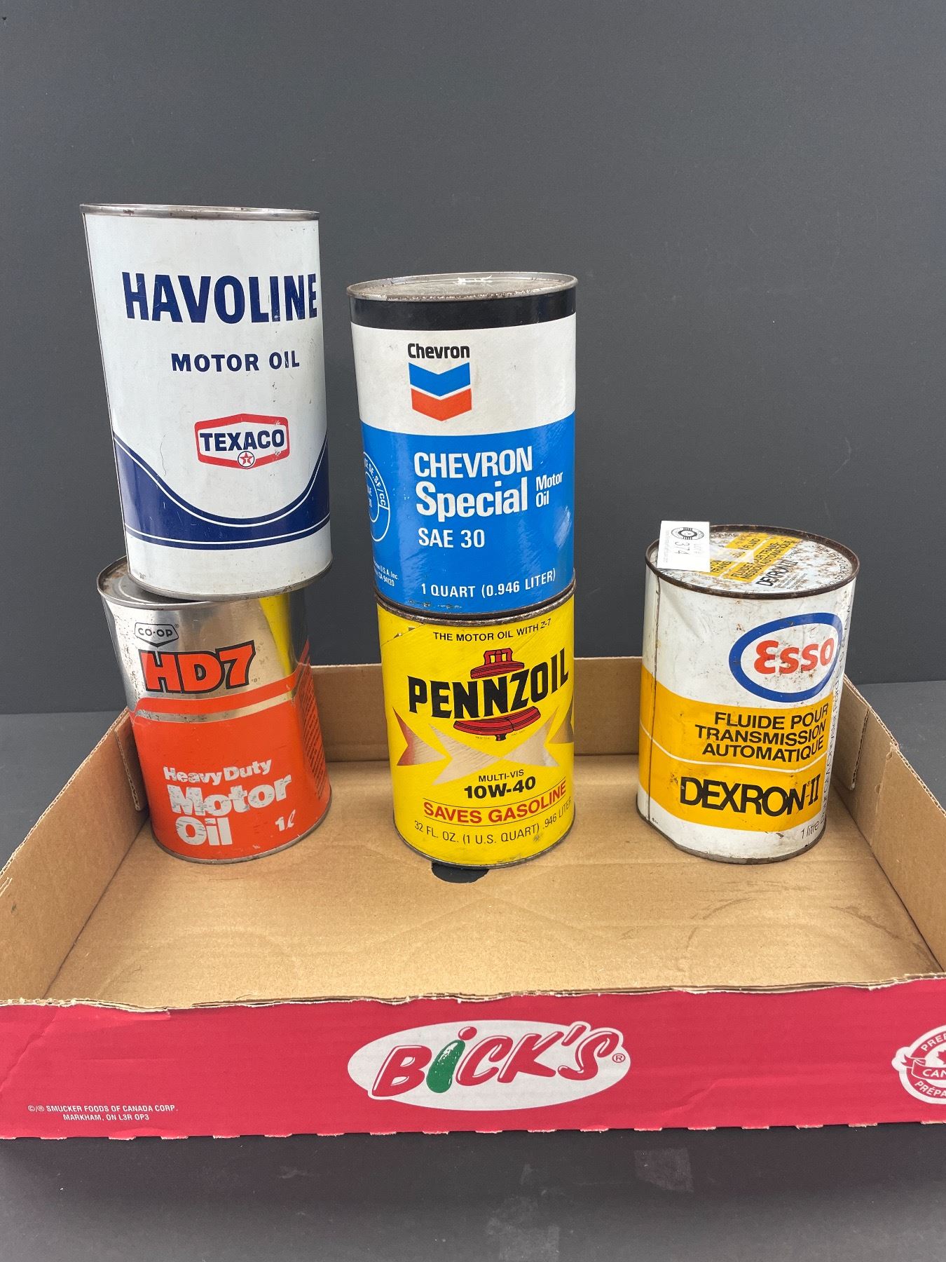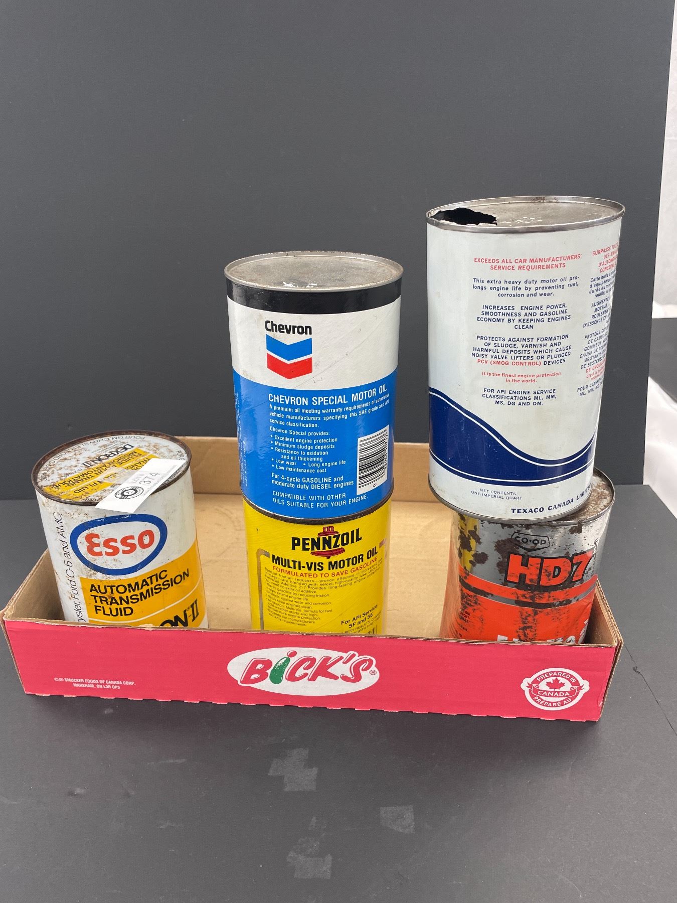Nice Lot of 5 Vintage Oil Cans Esso Penzoil Texaco Etc
