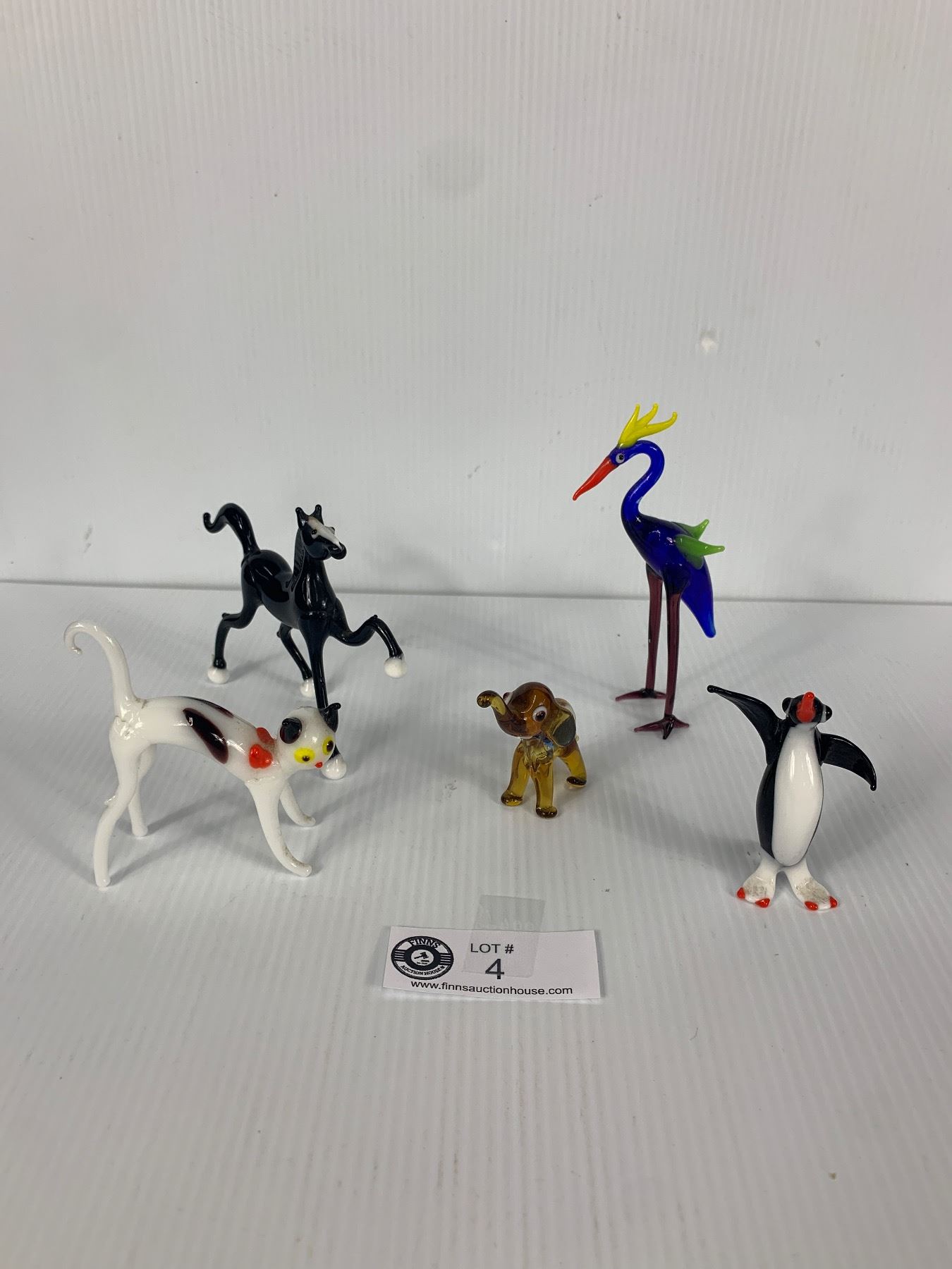Nice Lot of Adorable Whimsical Glass Animals, Penguin,Elephant, Cat, Horse etc