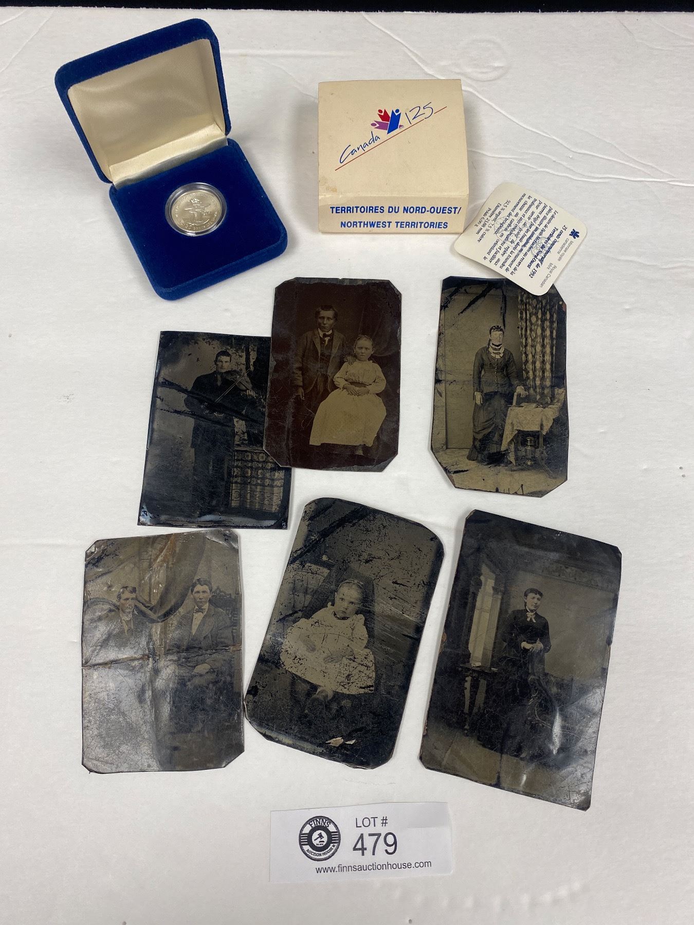 Nice Lot of Antique Tin Types and Canada Commerative 25 Cent Coin in Case