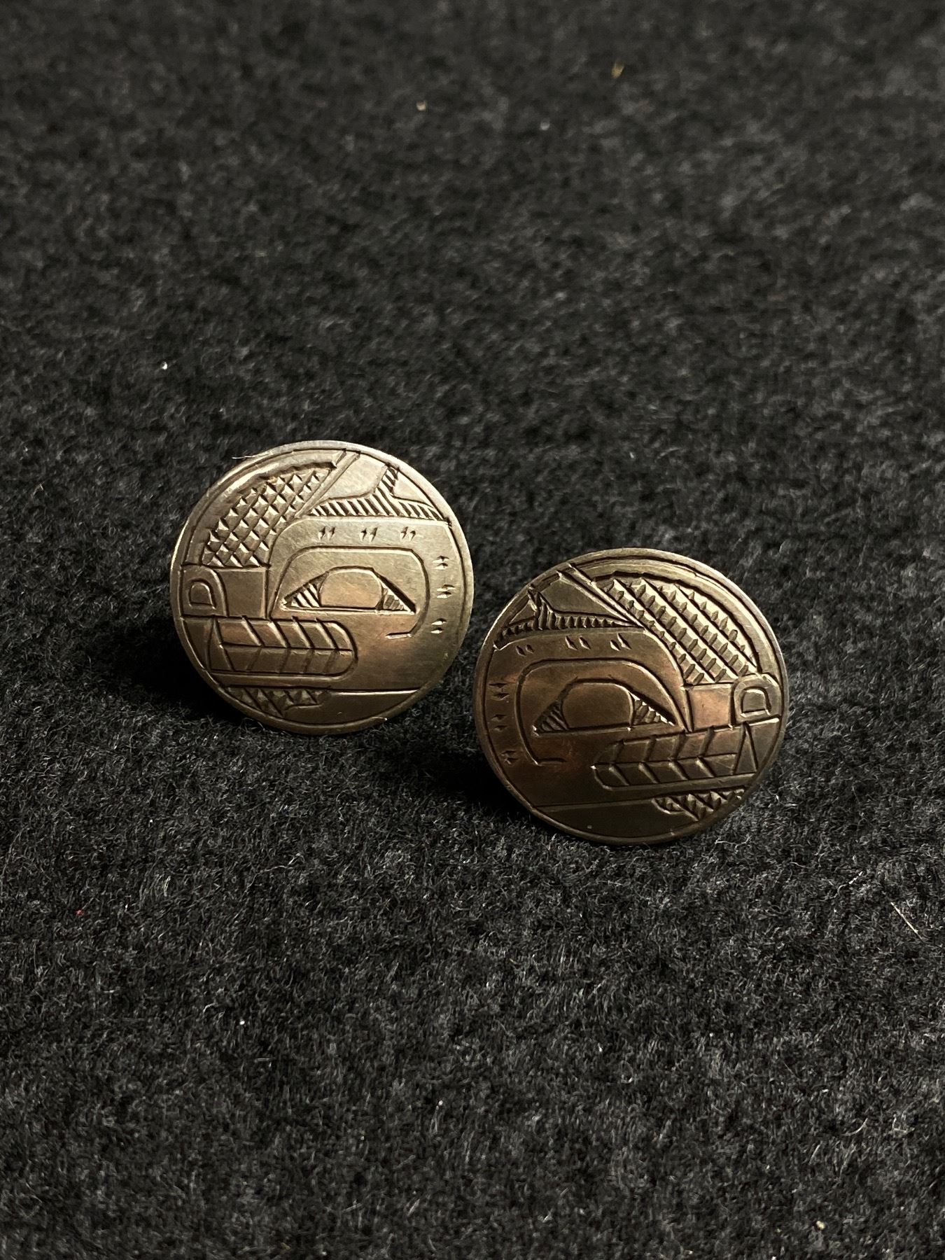 Nice Pair Of West Coast First Nations Sterling Silver Earrings. Signed