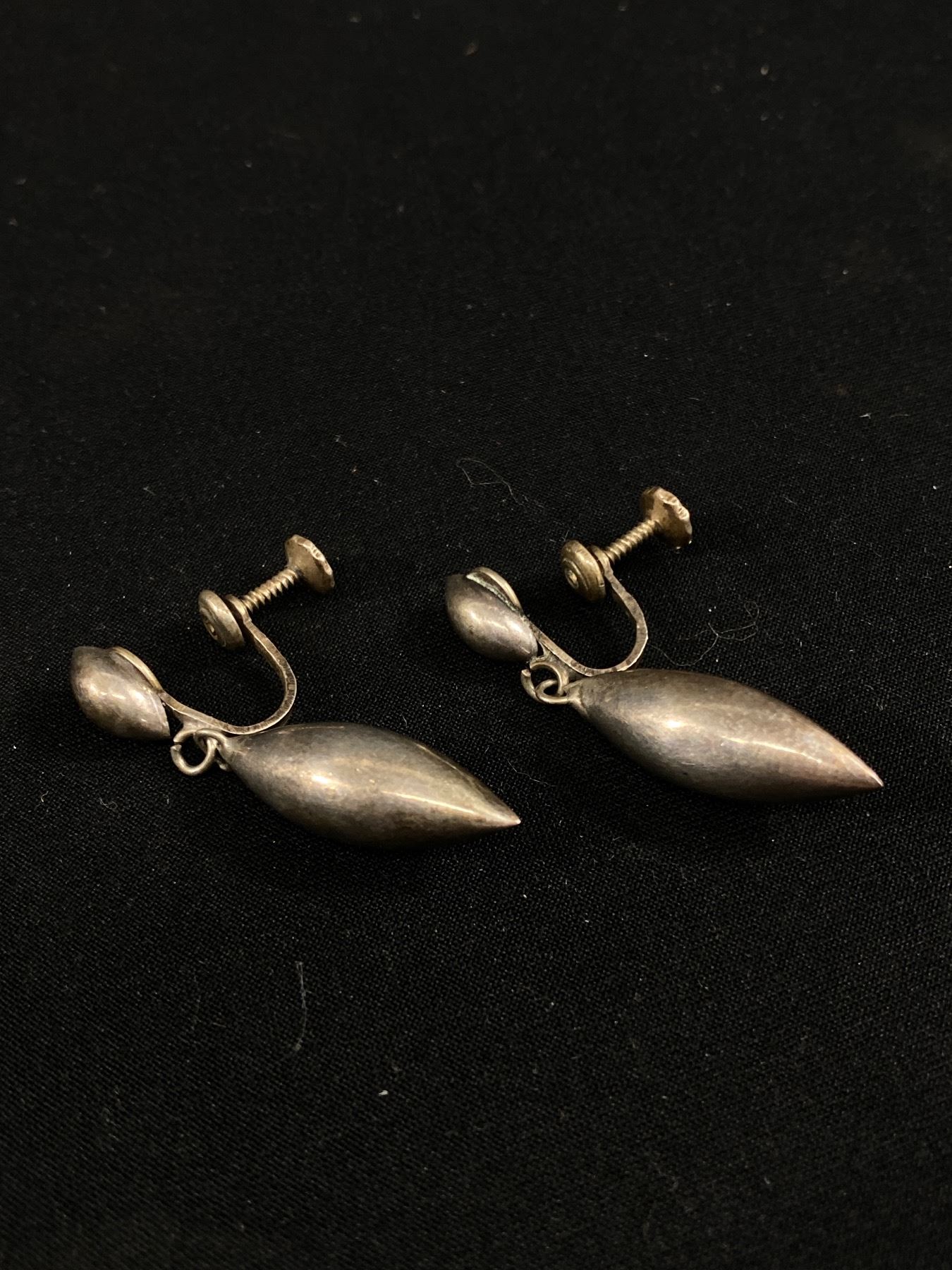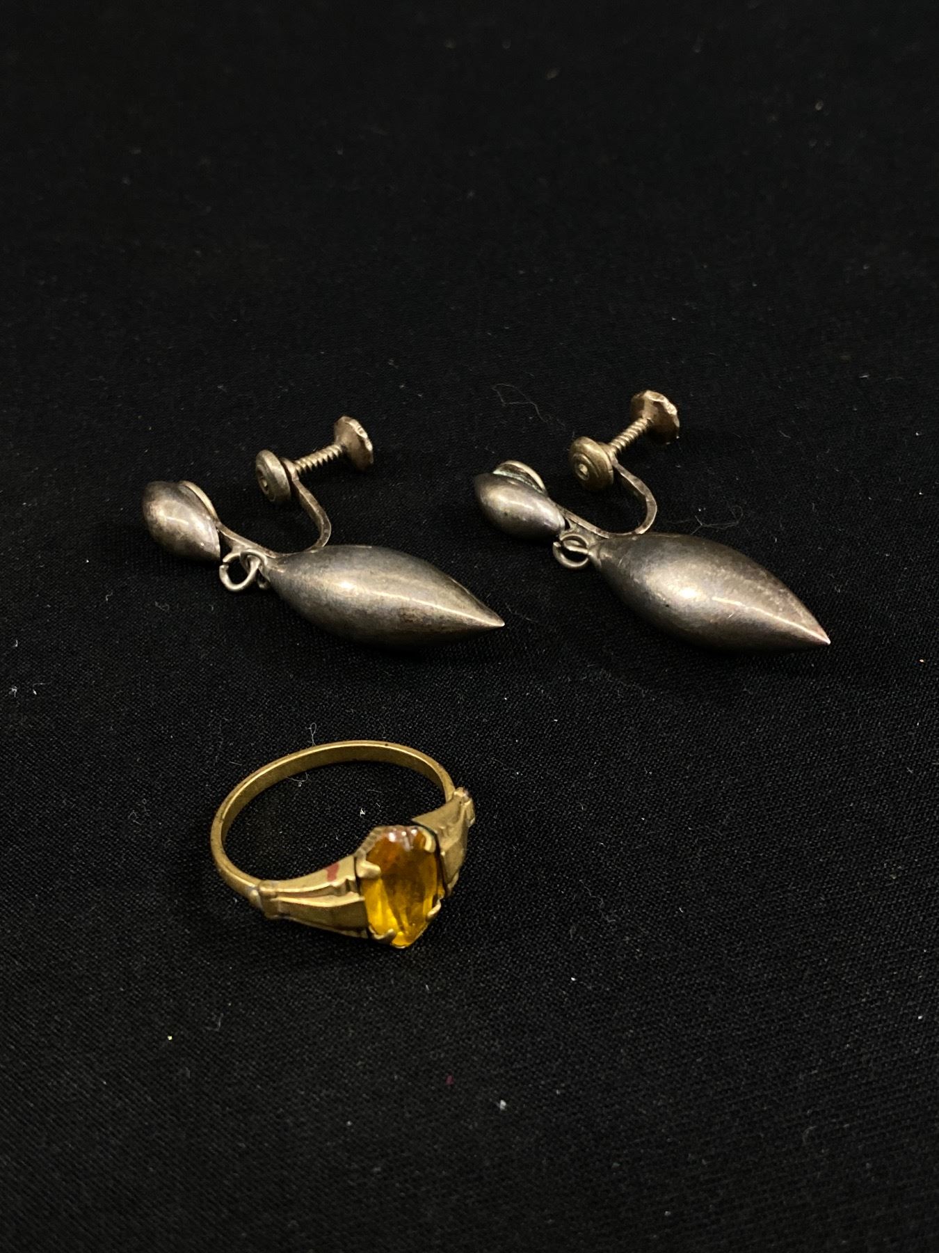 Nice Pair of Sterlilng Torpedo Earrings & 1930's Art Deco Gold Plated Ring