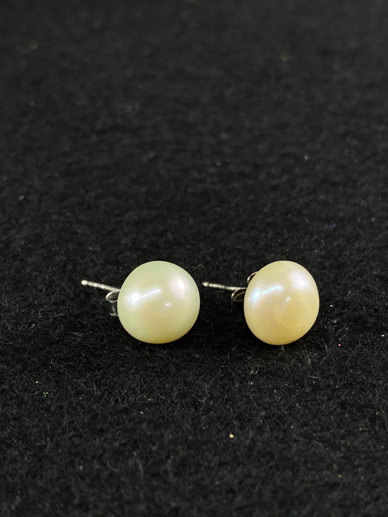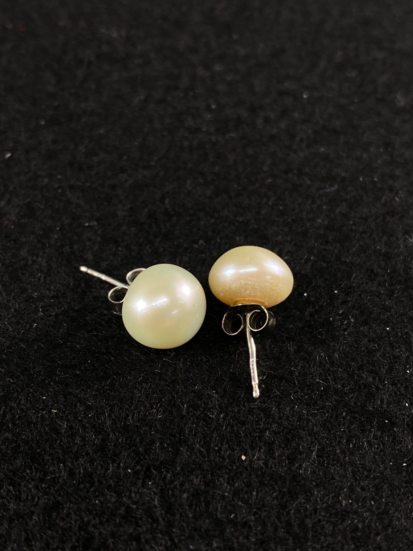 Nice Pair of Sterling Silver with Genuine Large Pearl Earrings in Black Box