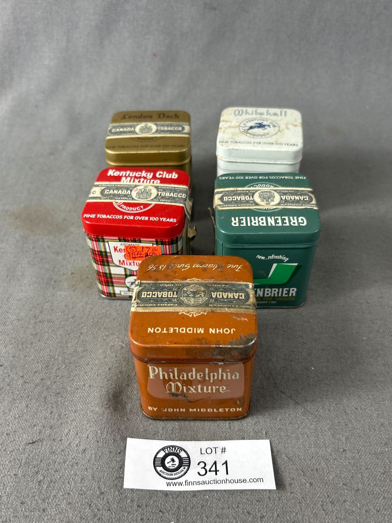 Nice Selection Of 5 Vintage 1 Oz Tobacco Tins